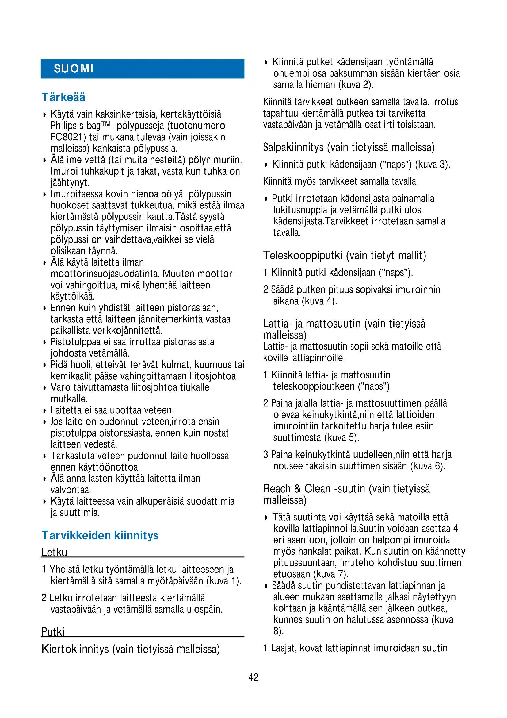 1 Laajat, kovat lattiapinnat imurooidaan suutin