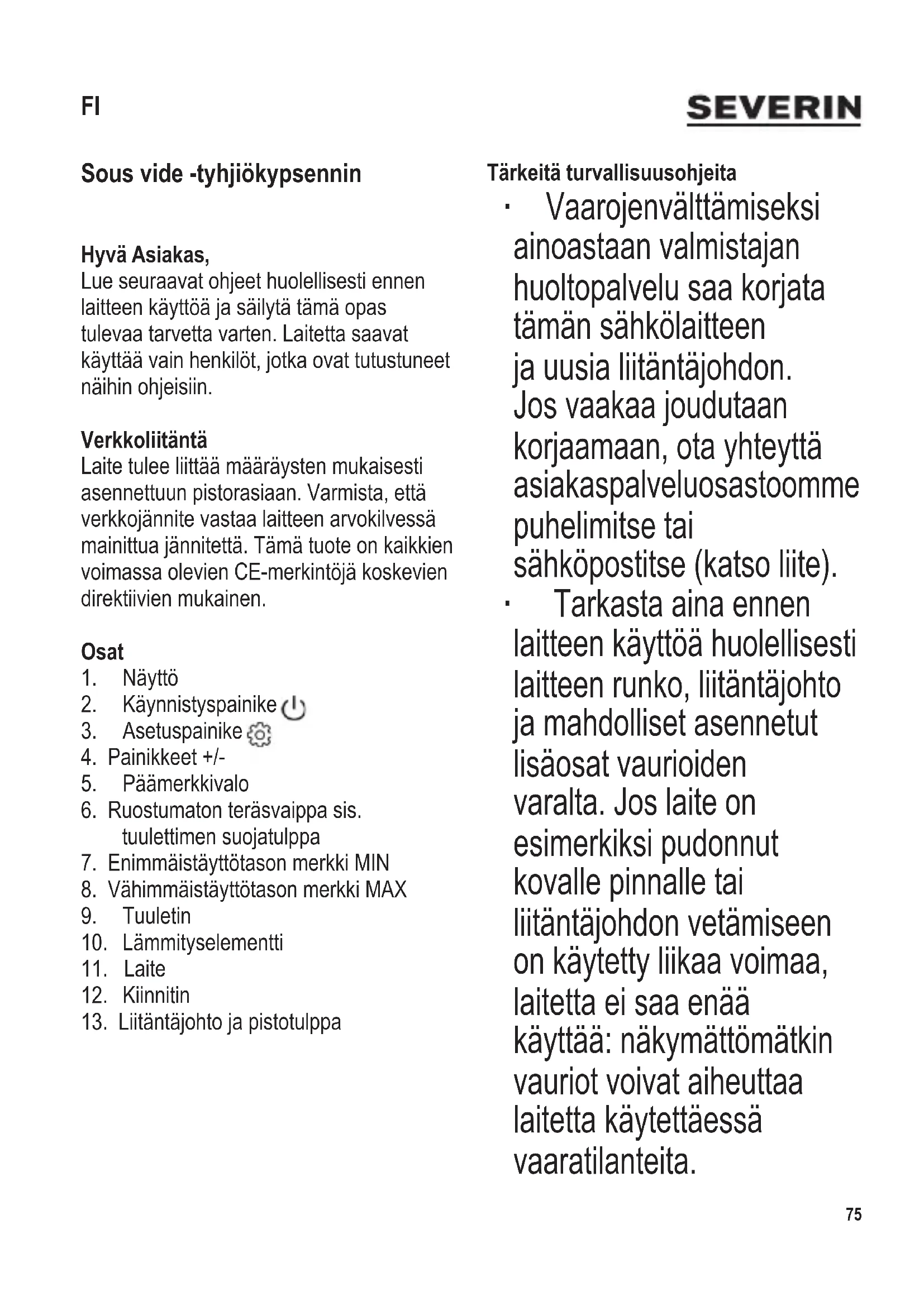 KÄYTTÖOHJE SV 2450 SEVERIN