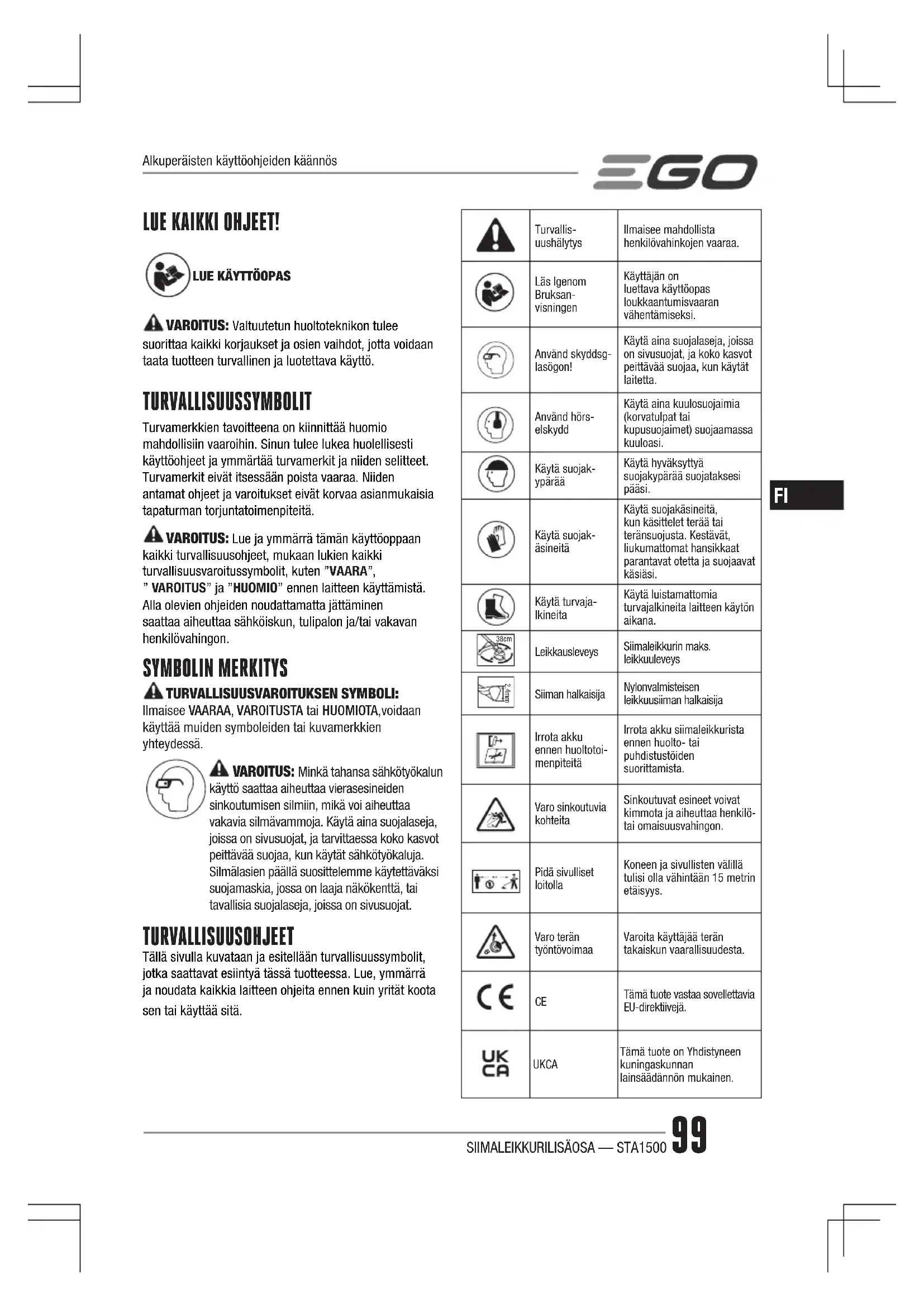 Löydä laitteen käyttöohje ilmaiseksi STA1500 EGO PDF-muodossa.