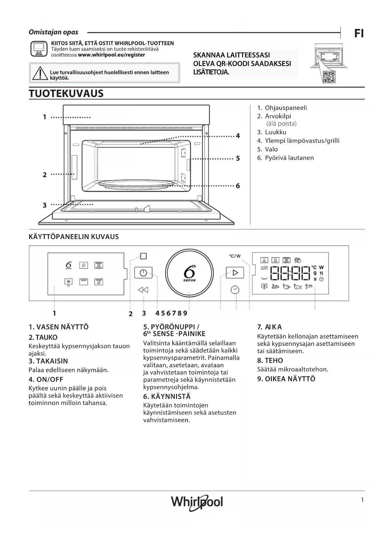 Täyden tuen saamiseksi on tuote rekisteröitävä osoitteessa www . whirlpool. eu/ register Lue turvallisuusohjeet huolellisesti ennen laitteen käyttöä. SKANNAA LAITTEESSASI
