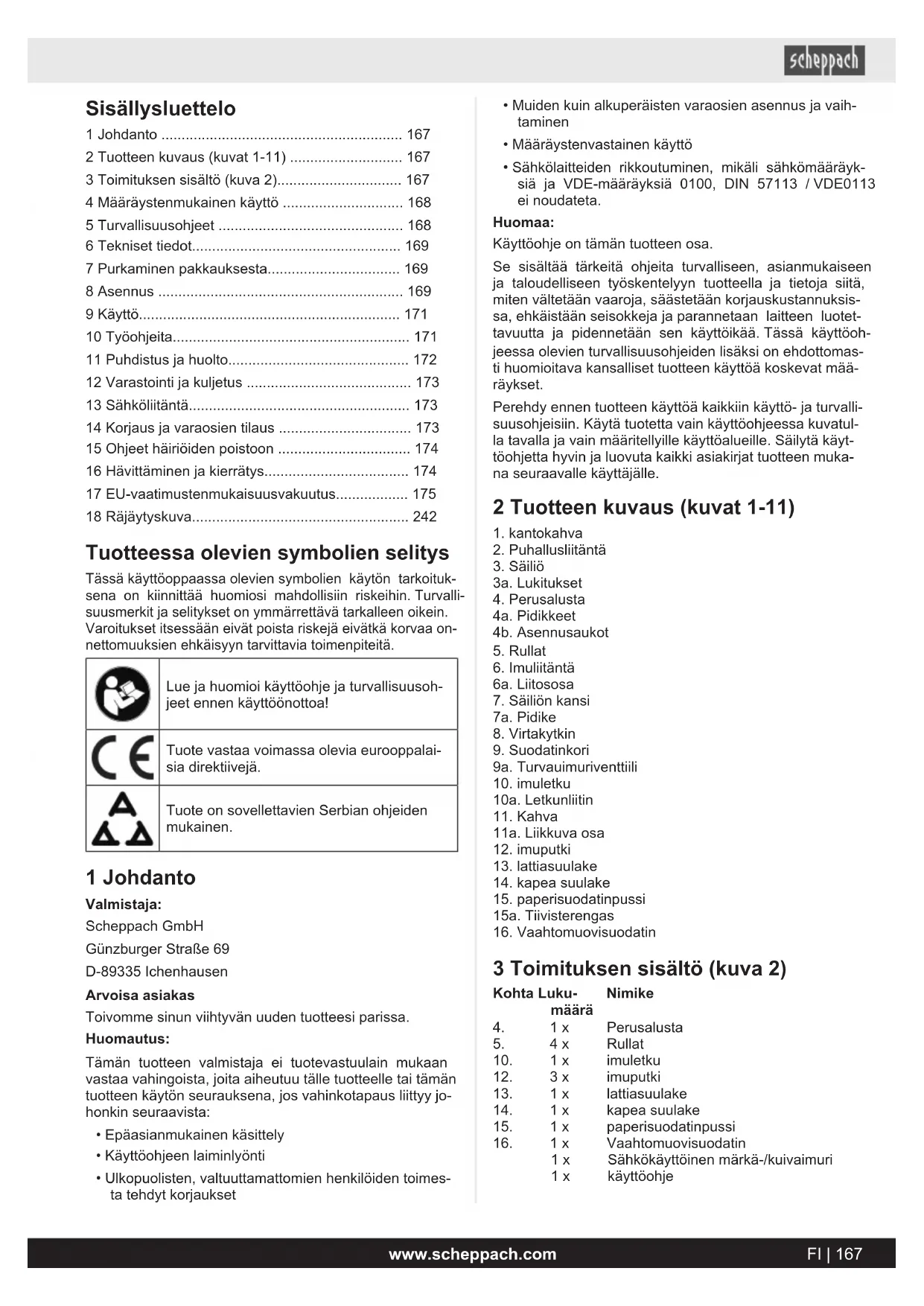 2 Tuotteen kuvaus (kuvat 1-11) 167