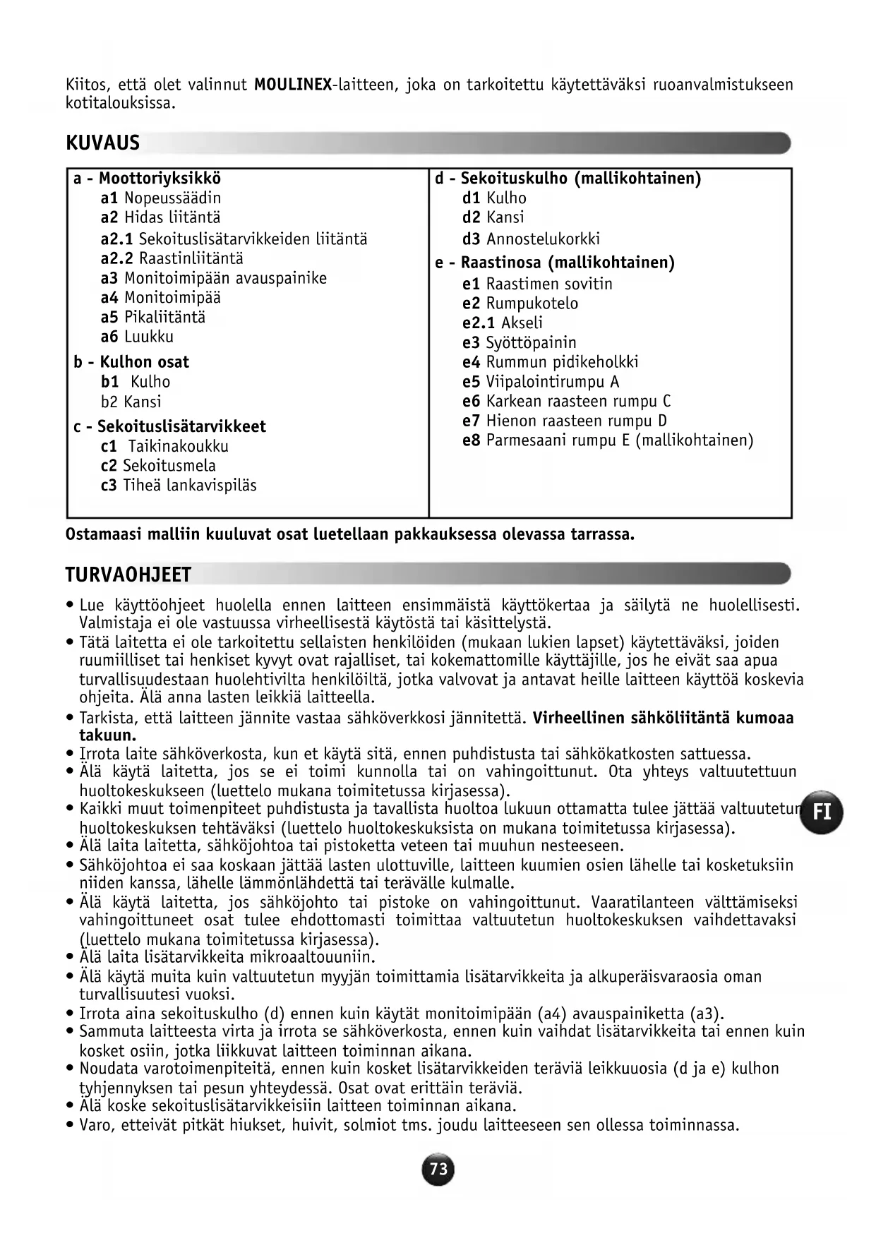 Kiitos, etta olet valinnut MOULINEX-laitteen, joka on tarkoitetu kaytettavaksi ruoanvalmistukseen kotitalouksissa.