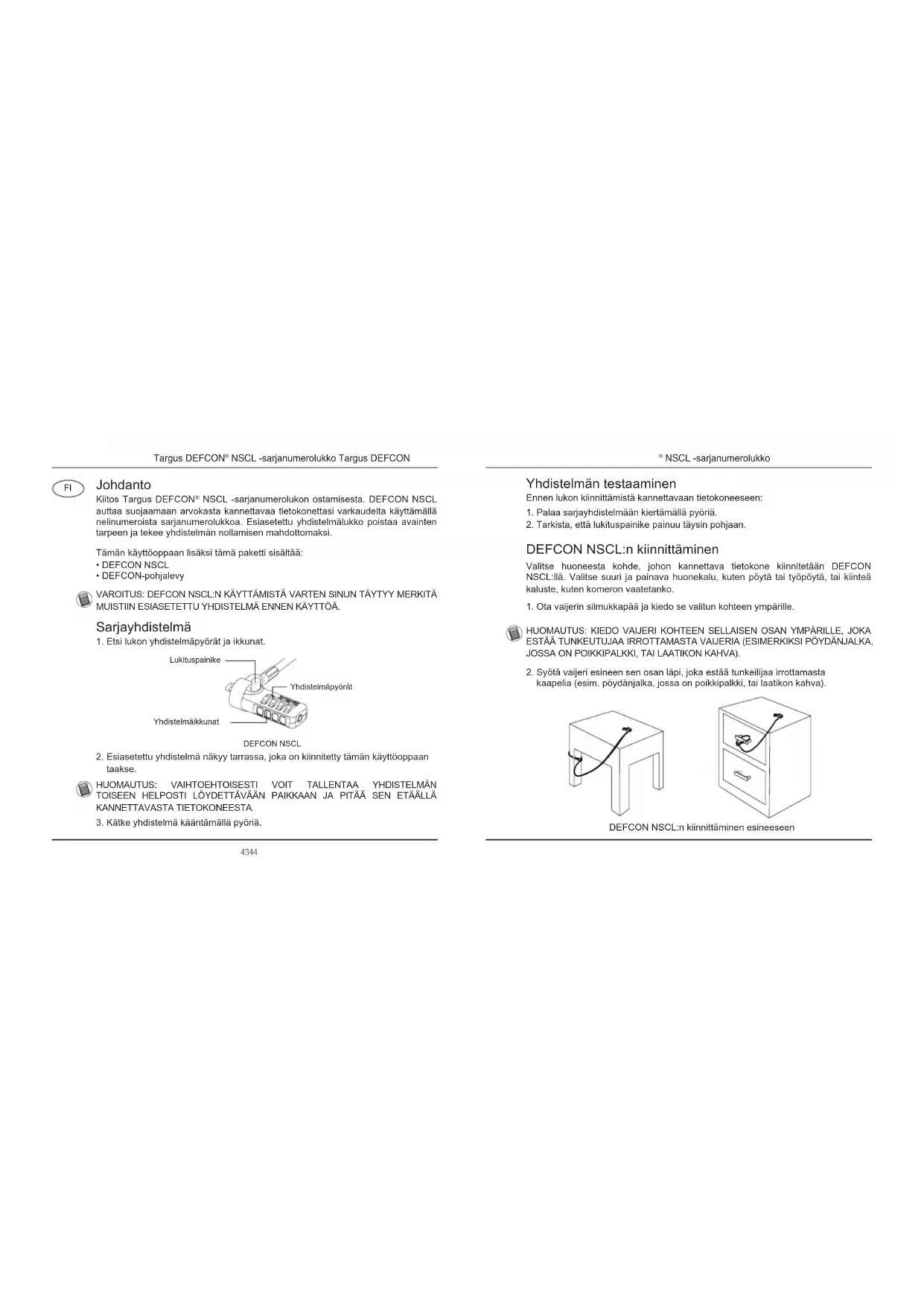 NSCL -sarjanumerolukko Johdanto Kiitos Targus DEFCON