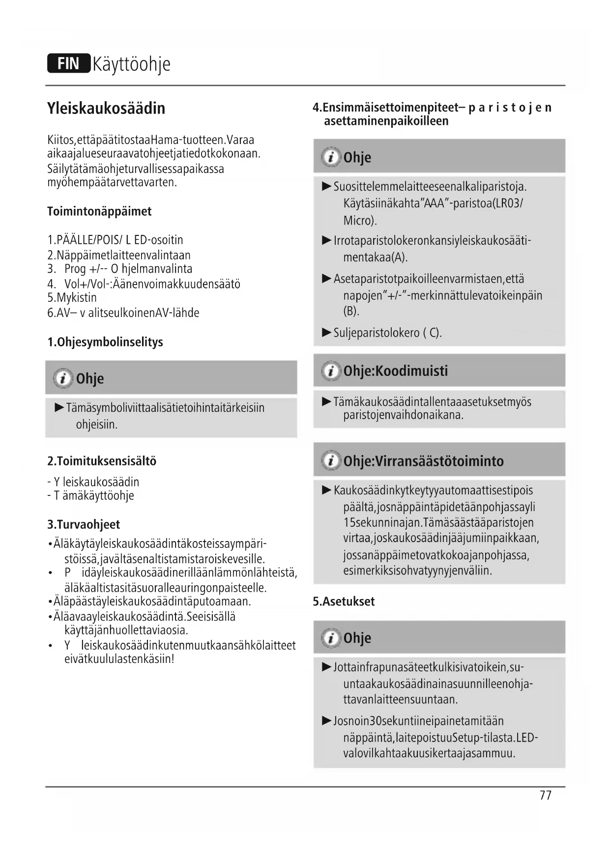 - Yleiskaukosäädin kuten muutkaan sähkölaitteet eivät kuulu lasten käsiin!