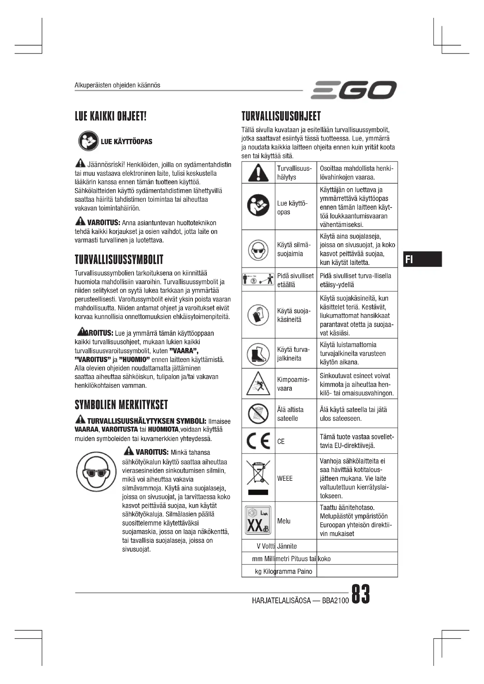KÄYTTÖOHJE BBA2100 EGO