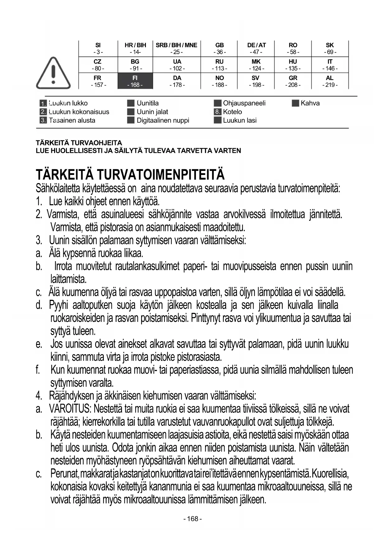 20. Mikroaaltouunia ei saa käyttää ulkoisella ajastimella tai erillisellä kaukosäädinjärjestelmällä