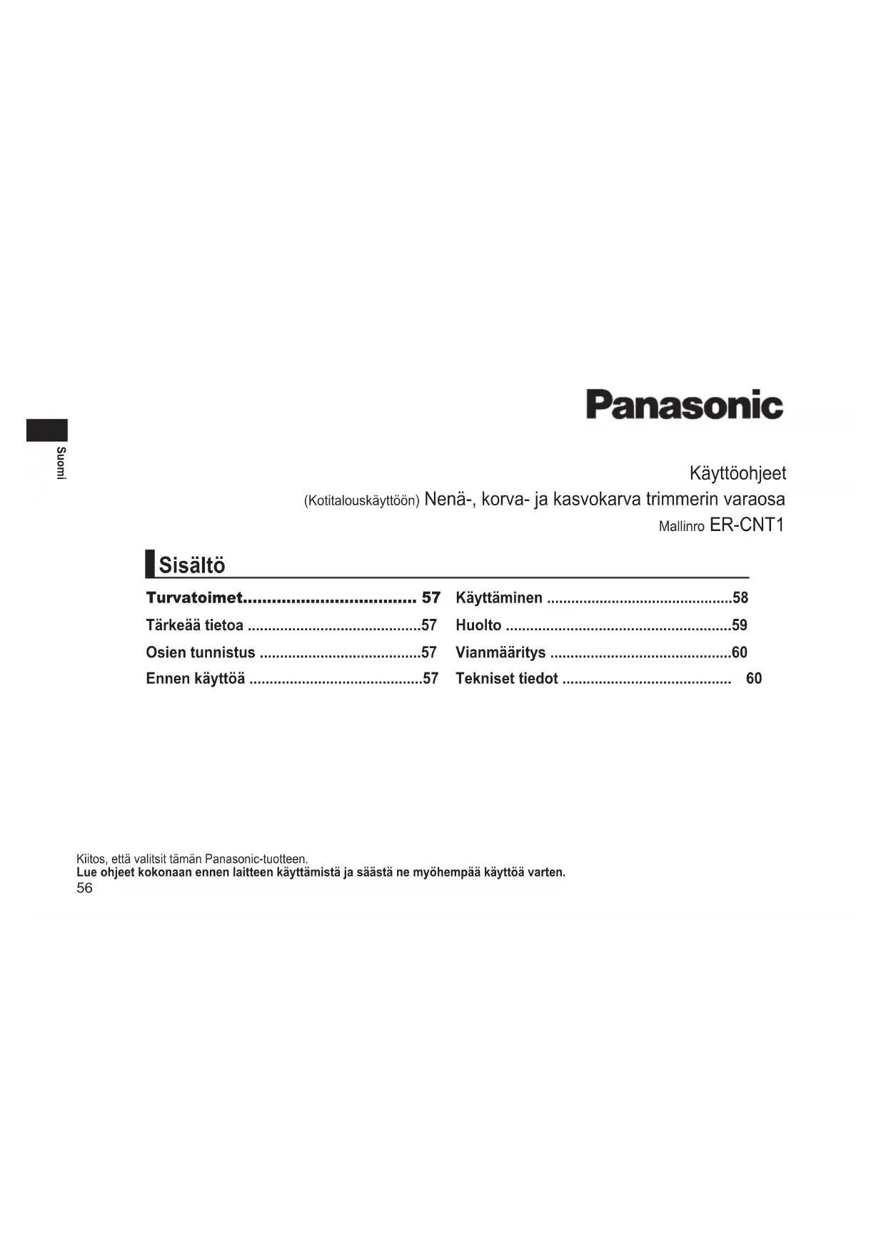 KÄYTTÖOHJE ERCNT1 PANASONIC