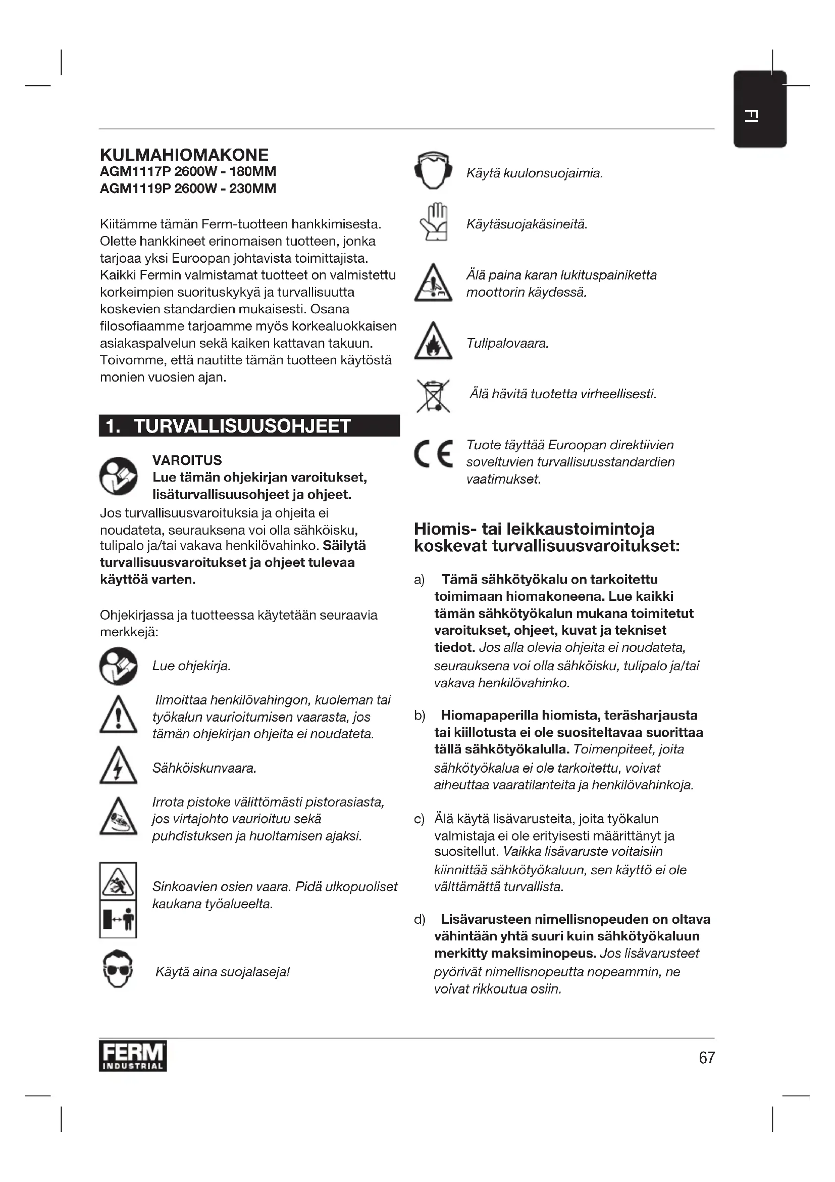 KÄYTTÖOHJE AGM1119P Ferm
