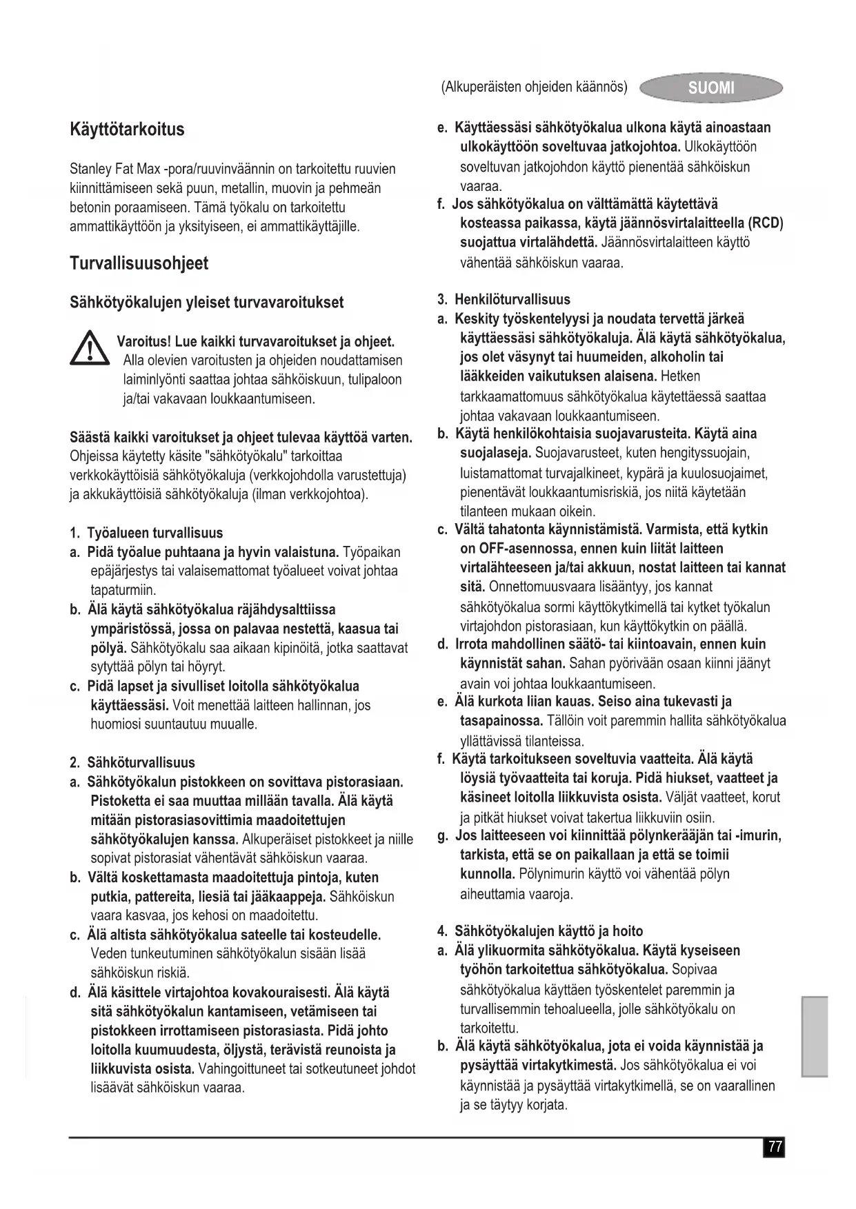Lataa ohjeet laitteellesi Pora PDF-muodossa ilmaiseksi! Löydä käyttöohjeesi FMC520 - STANLEY ja ota elektroninen laitteesi takaisin hallintaan. Tällä sivulla julkaistaan kaikki laitteidesi käyttöön tarvittavat asiakirjat. FMC520 merkiltä STANLEY.