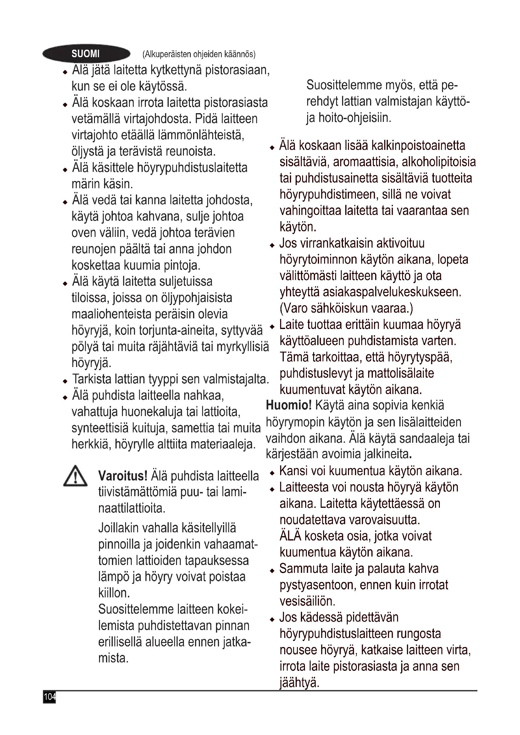 (Alkuperäisten ohjeiden käännös) SUOMI