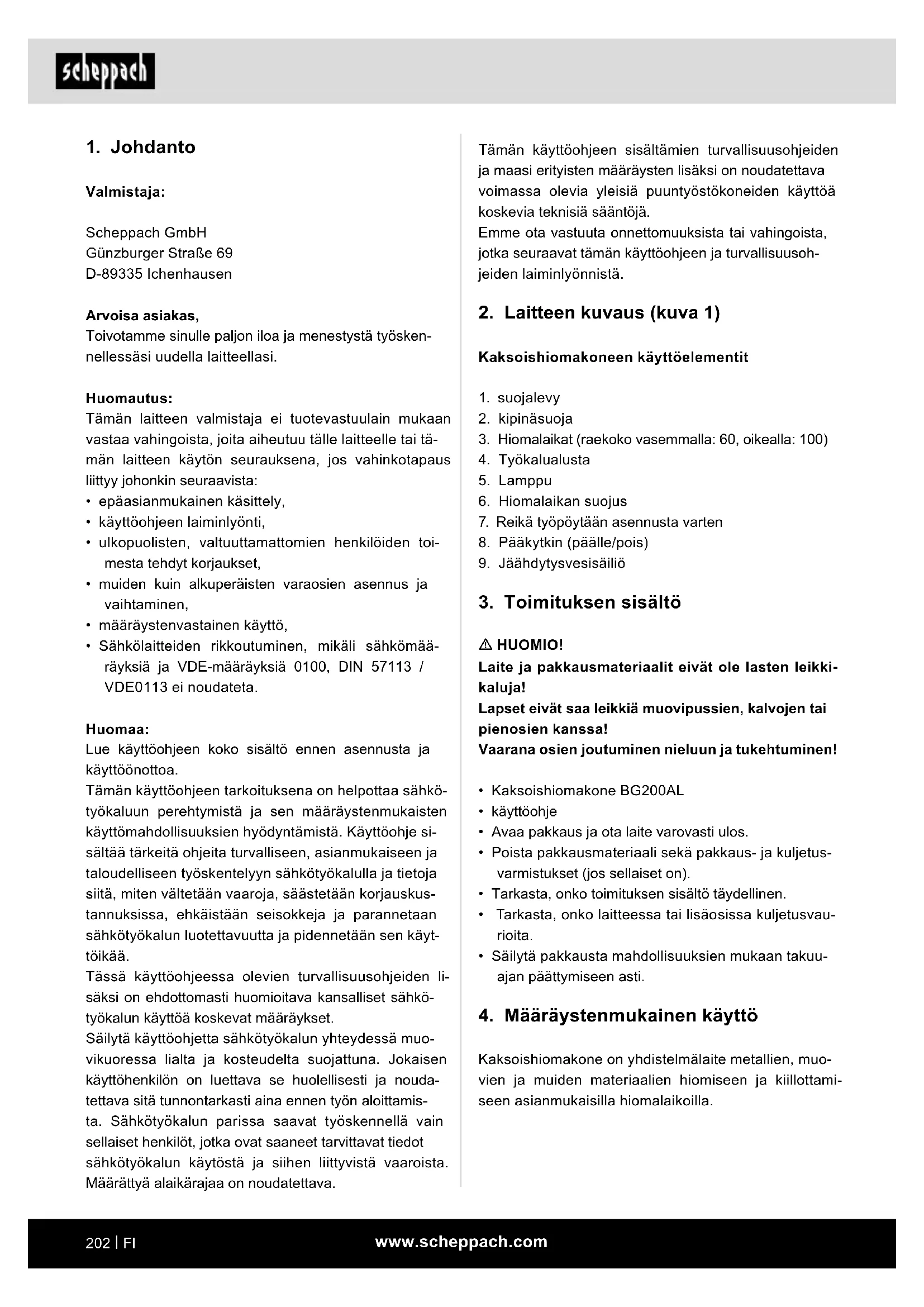 KÄYTTÖOHJE BG200AL SCHEPPACH
