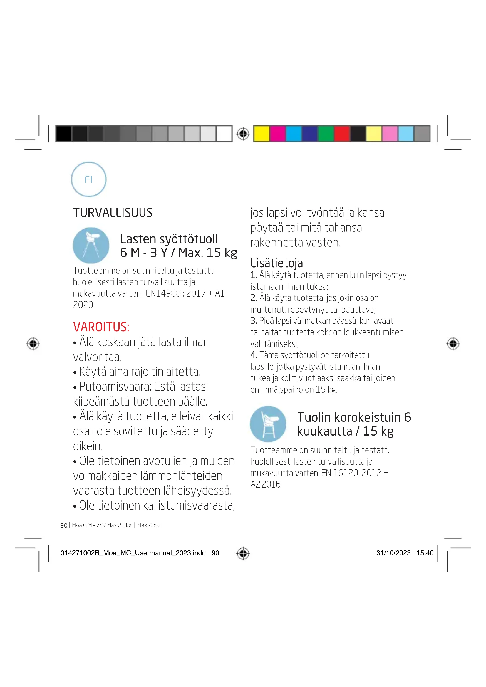 Maxi-Cosi TURVALLISUUS Lasten syöttötuoli 6 M - 3 Y / Max. 15 kg Tuotteemme on suunniteltu ja testattu huolellisesti lasten turvallisuutta ja mukavuutta varten. EN14988 : 2017 + A1: