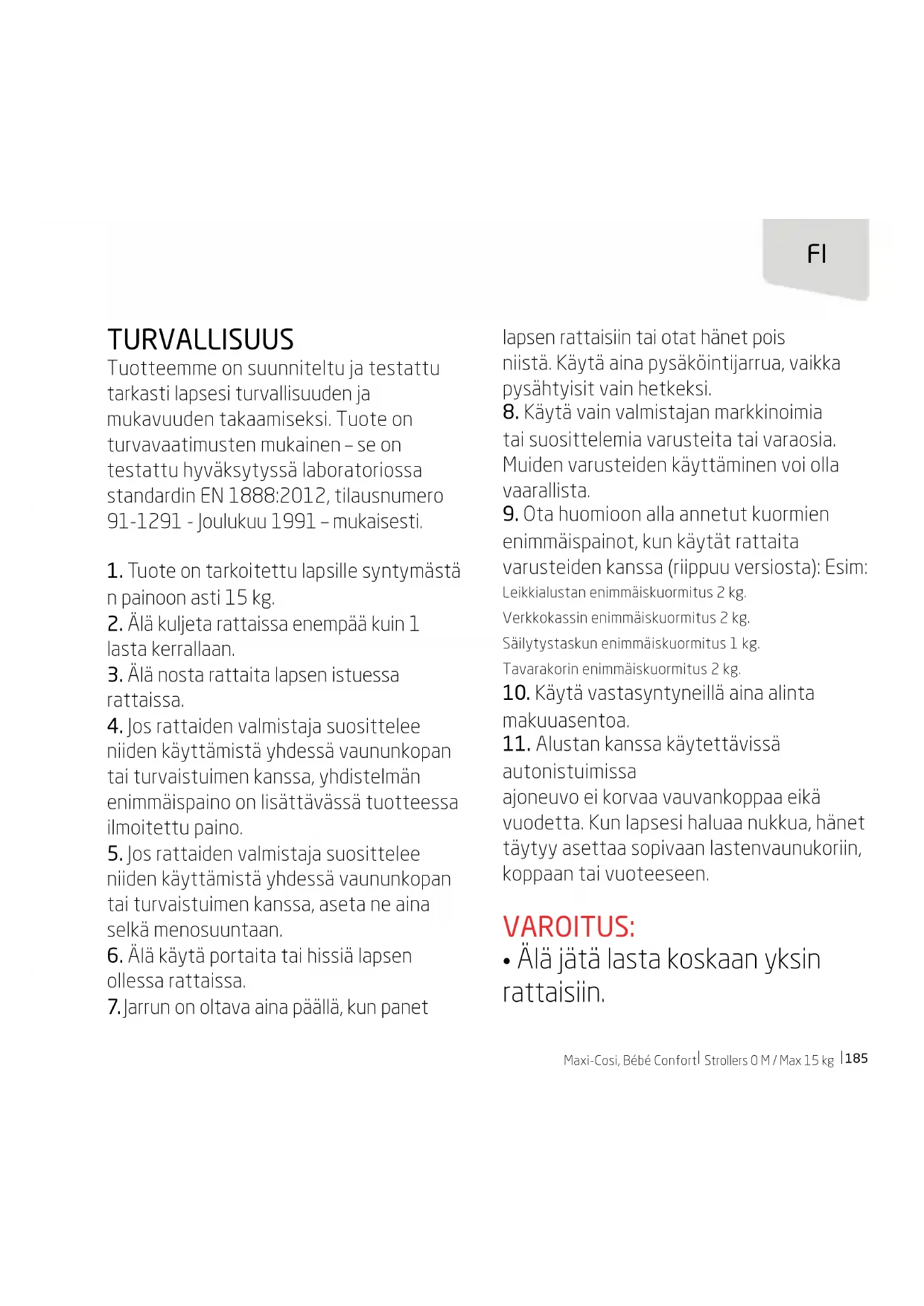 - Älä jätä lasta koskaan yksin rattaisiin.186