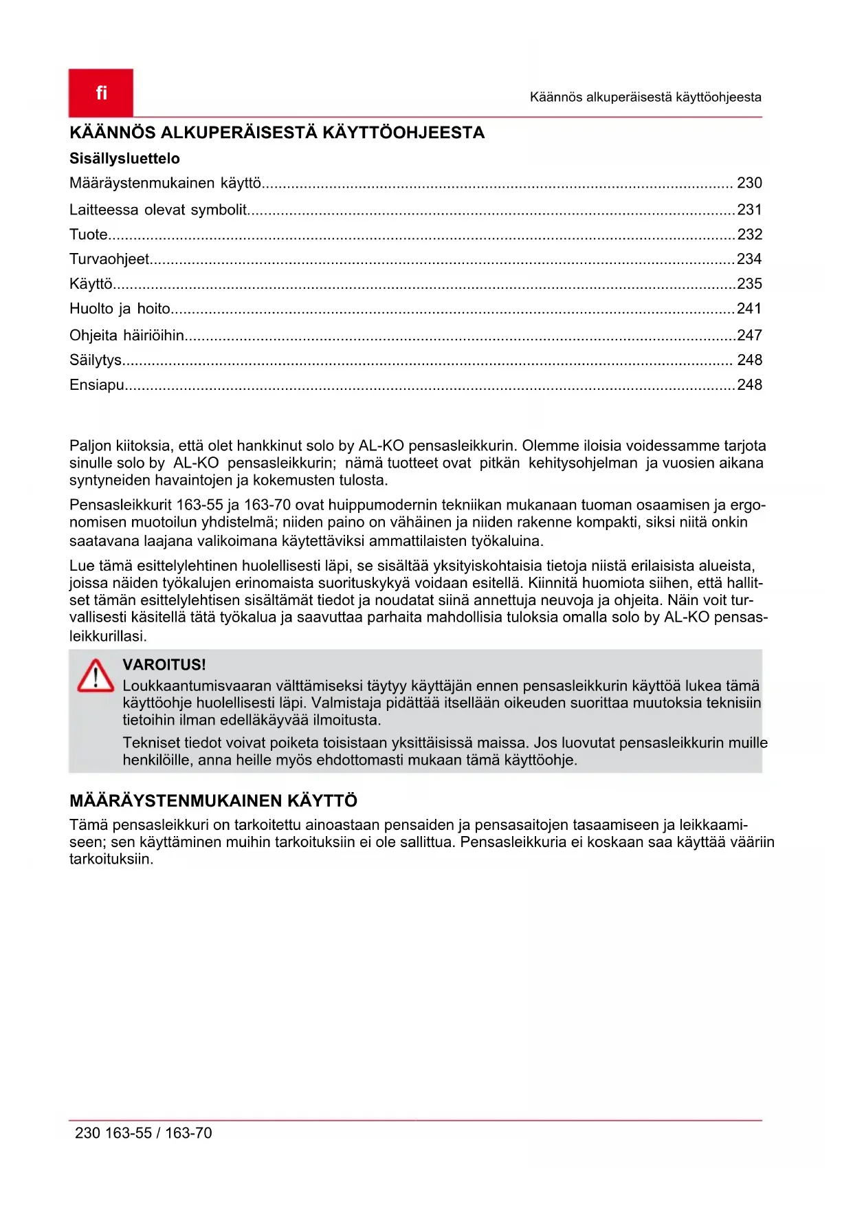 Solo 16370 - Aidanleikkurit AL-KO - Ilmainen käyttöohje ja opas
