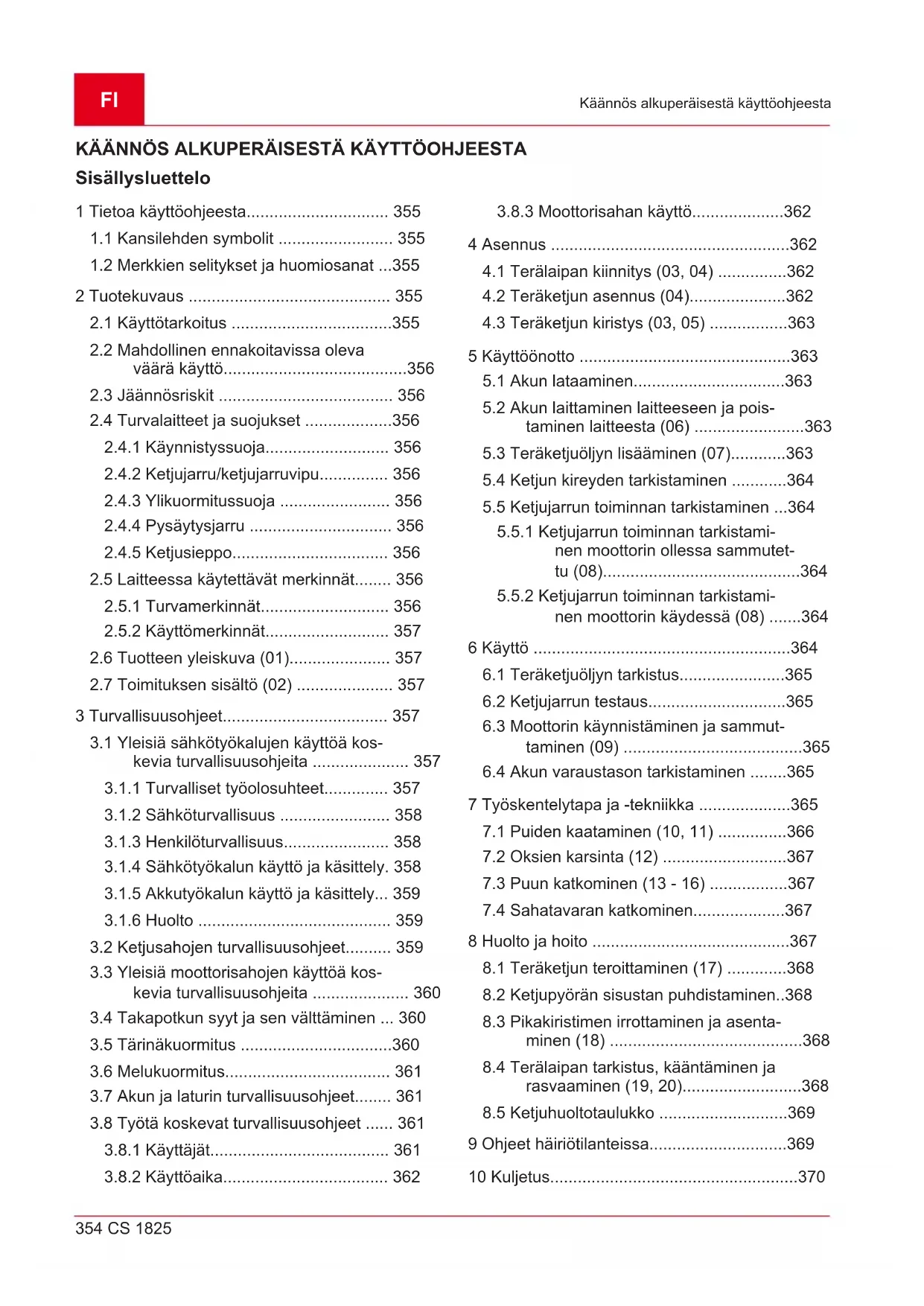 3.2 Ketjusahojen turvallisuusohjeet.......... 359