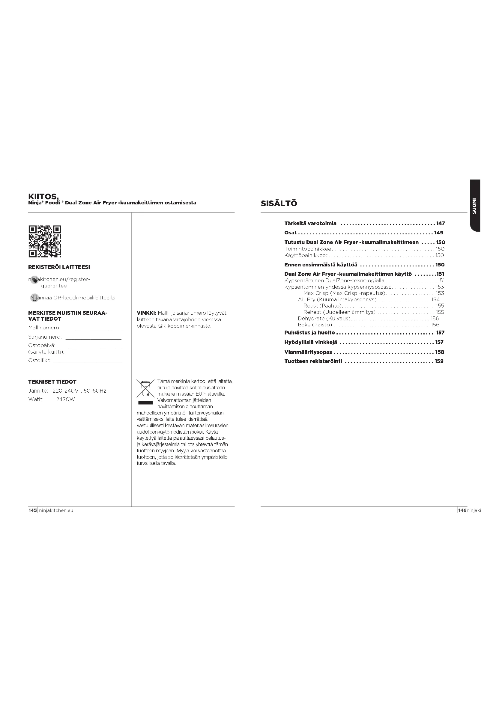 Dual Zone Air Fryer -kuumailmakeittimen kayttö 151