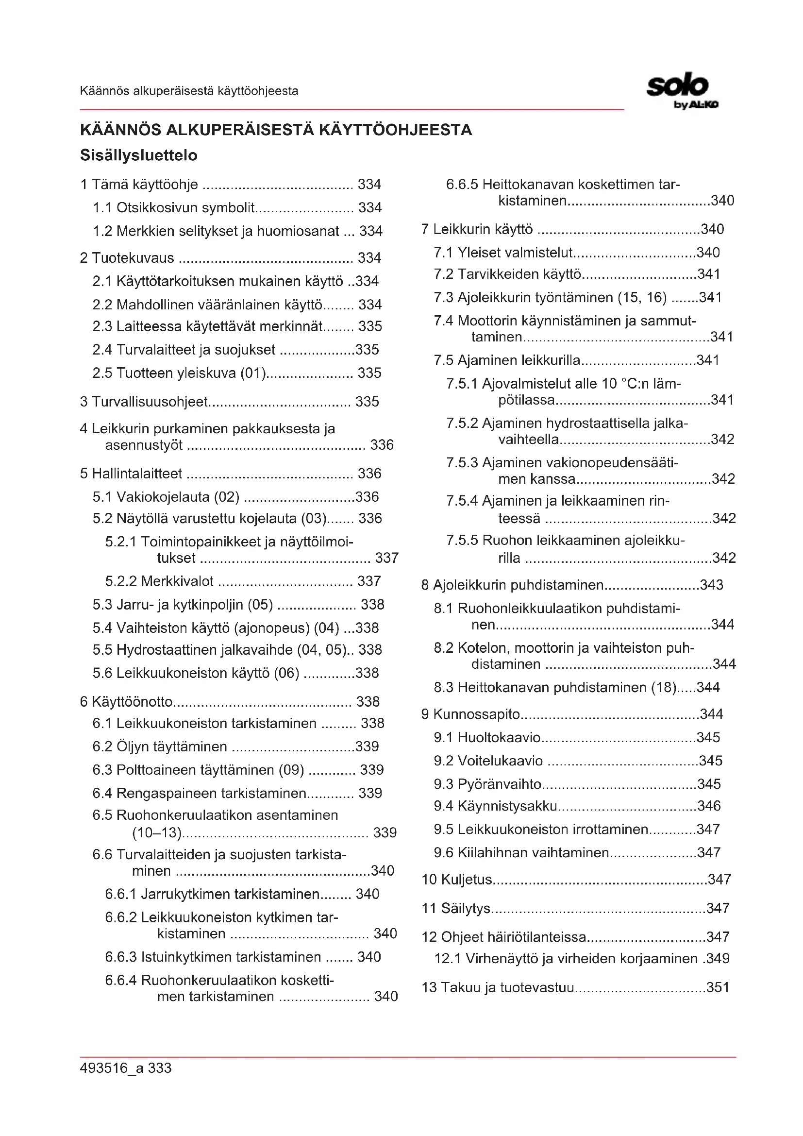 rilla ...............................................342 8 Ajoleikkurin puhdistaminen........................343