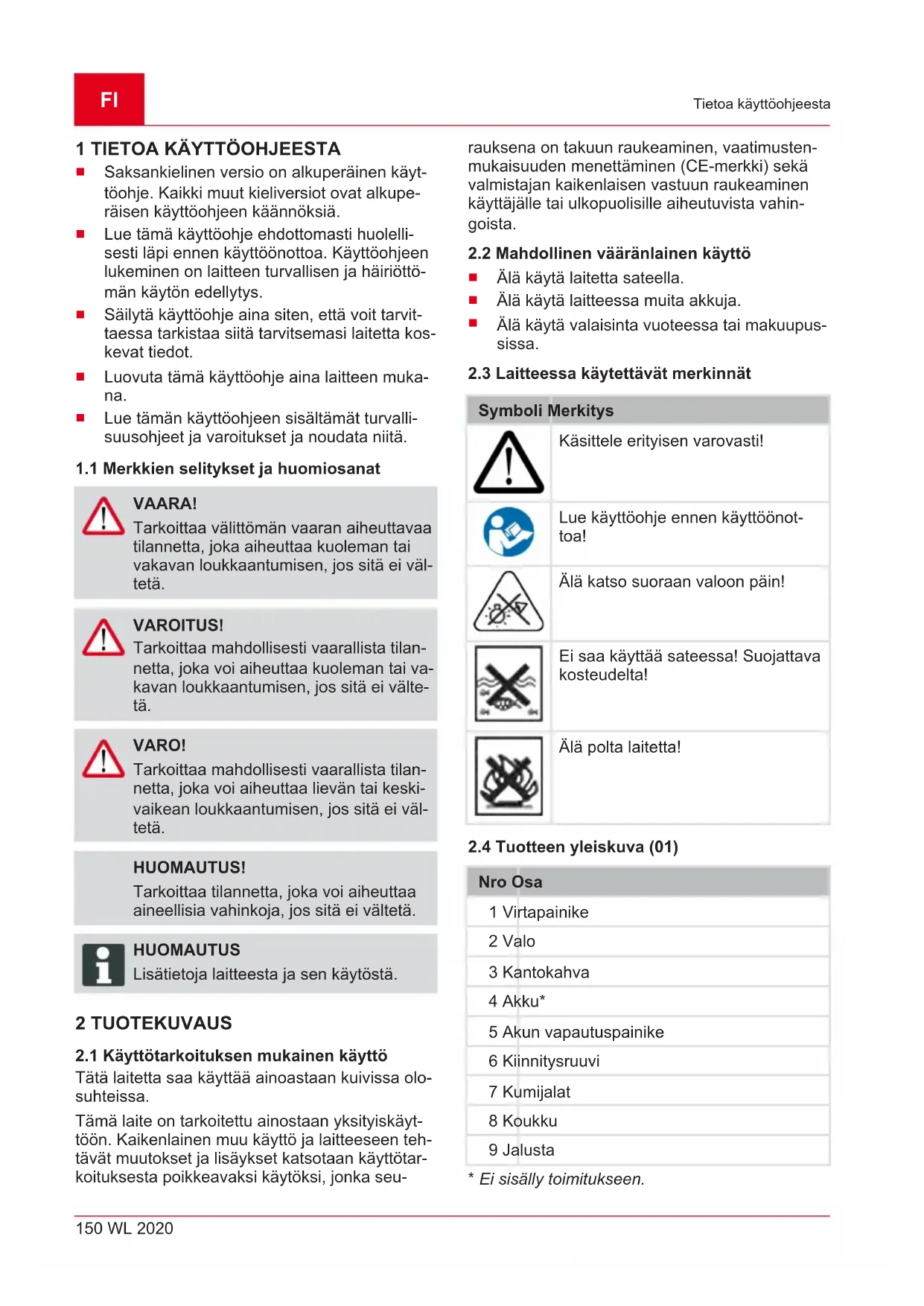 1 TIETOA KÄYTTÖOHJEESTA