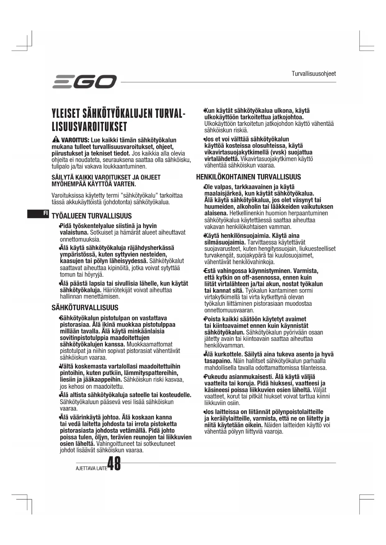 SÄILYTÄ KAIKKI VAROITUKSET JA OHJEET