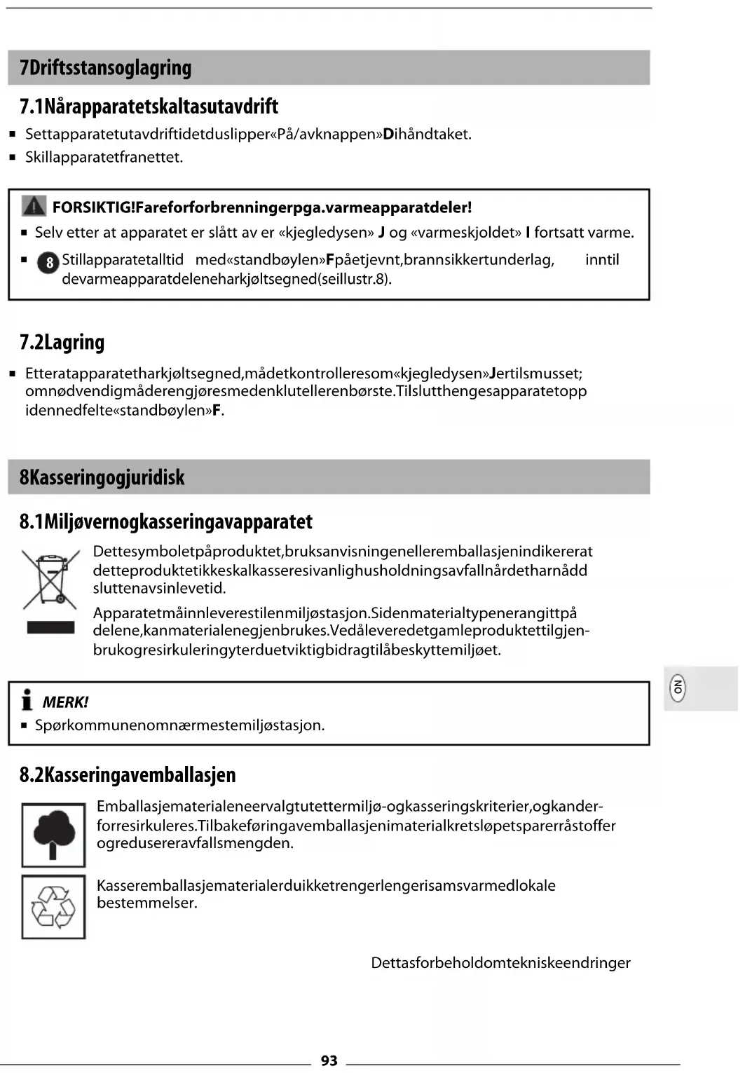 Lue käyttöohje! Palovaarallisia aineita koskeva varoitus! Avotuli kielletty! Tupakointi kielletty! Älä käytä räjähdysalttiissa ympäristössä! Hylättyjä sähkö- ja elektroniikkalaitteita EI SAA laittaa tavalliseen talousjätteeseen. Ympäristöystävällinen jätehuolto Pakkausmateriaalit ovat kierrätettävää raaka-ainetta