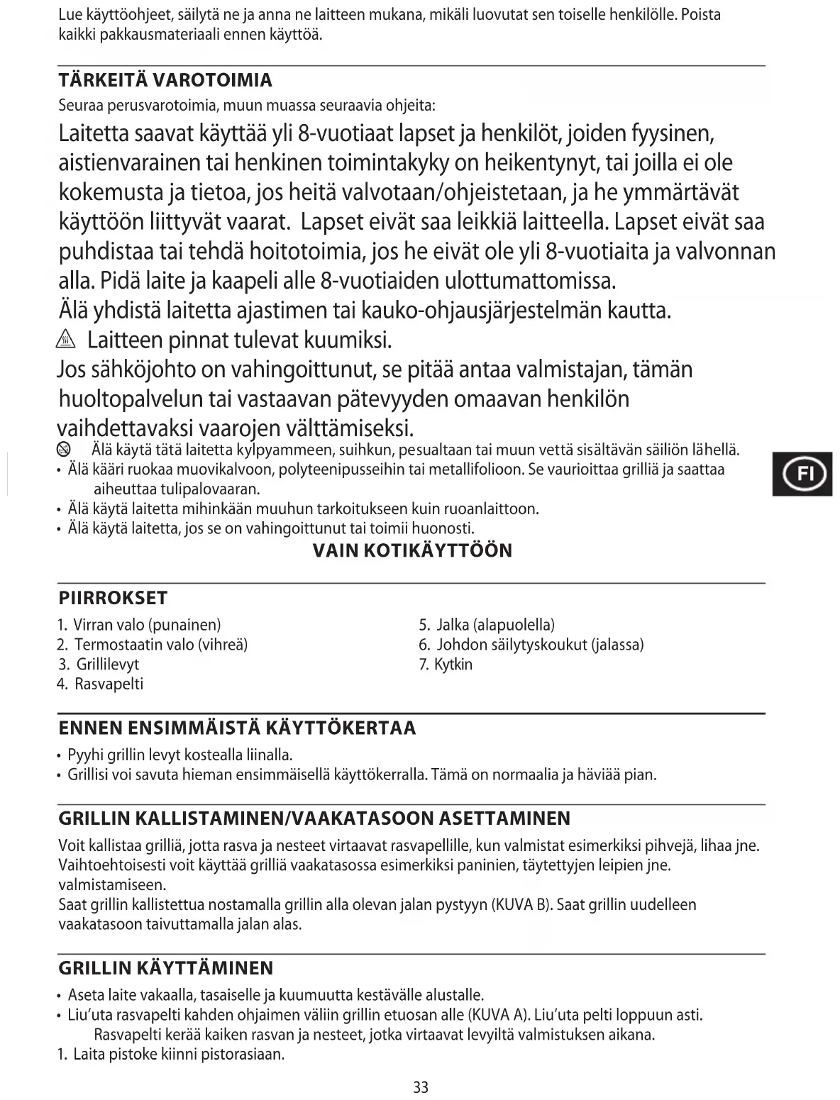 - Grillisi voi savuta hieman ensimmäisellä käyttökerralla. Tämä on normaalia ja häviää pian.