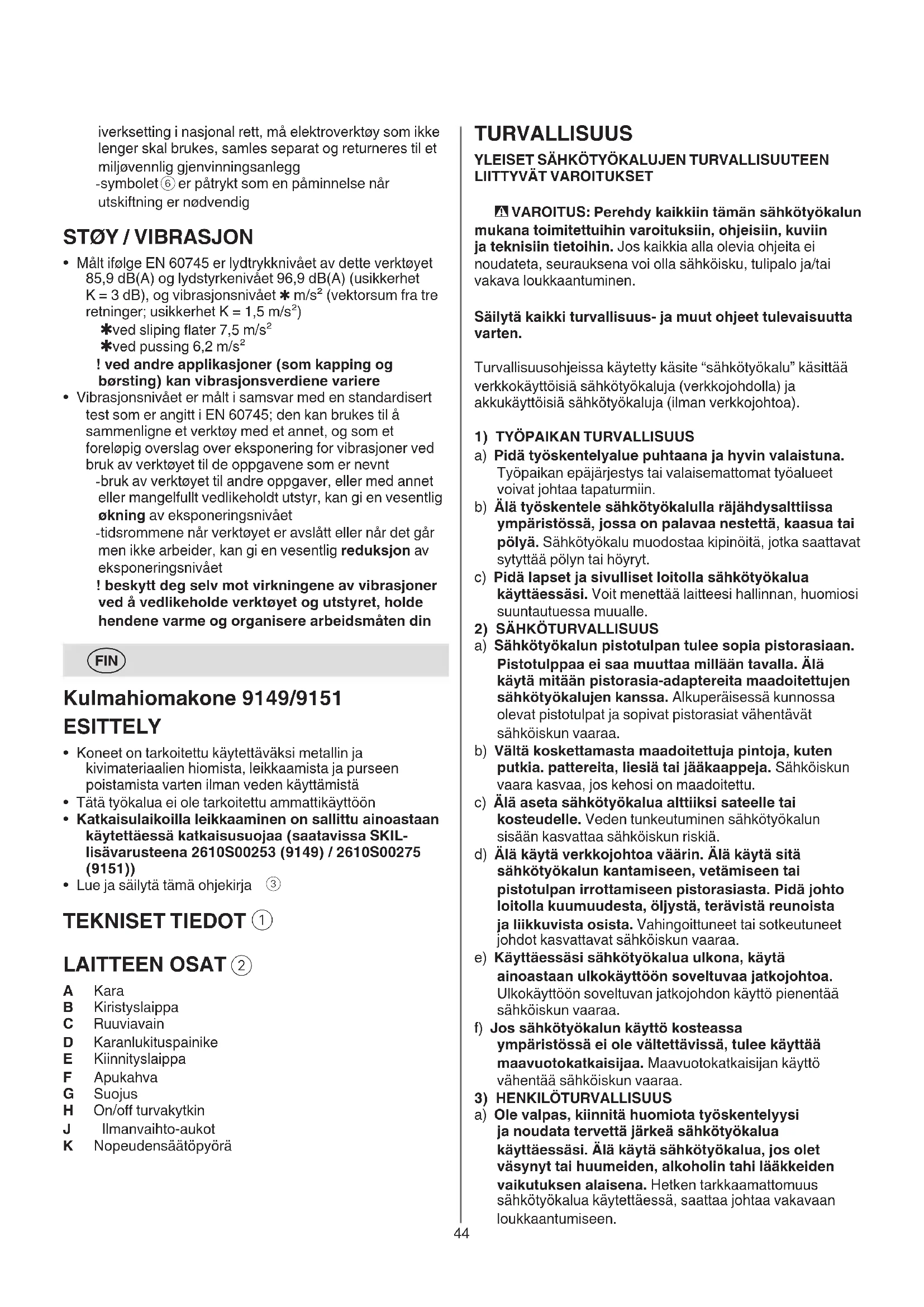 KÄYTTÖOHJE 9149 GA SKIL