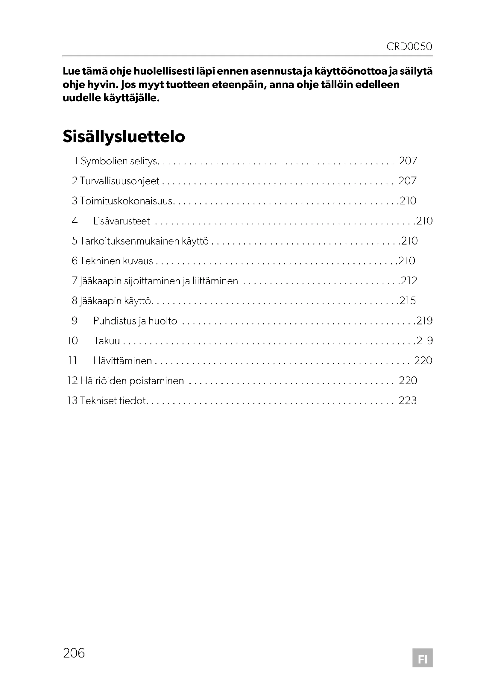 - 13 Tekniset tiedot CRD0050--IO-16s.book Seite 206 Mittwoch, 16. August 2017 10:30 10FI CRD0050 Symbolien selitys p. 223