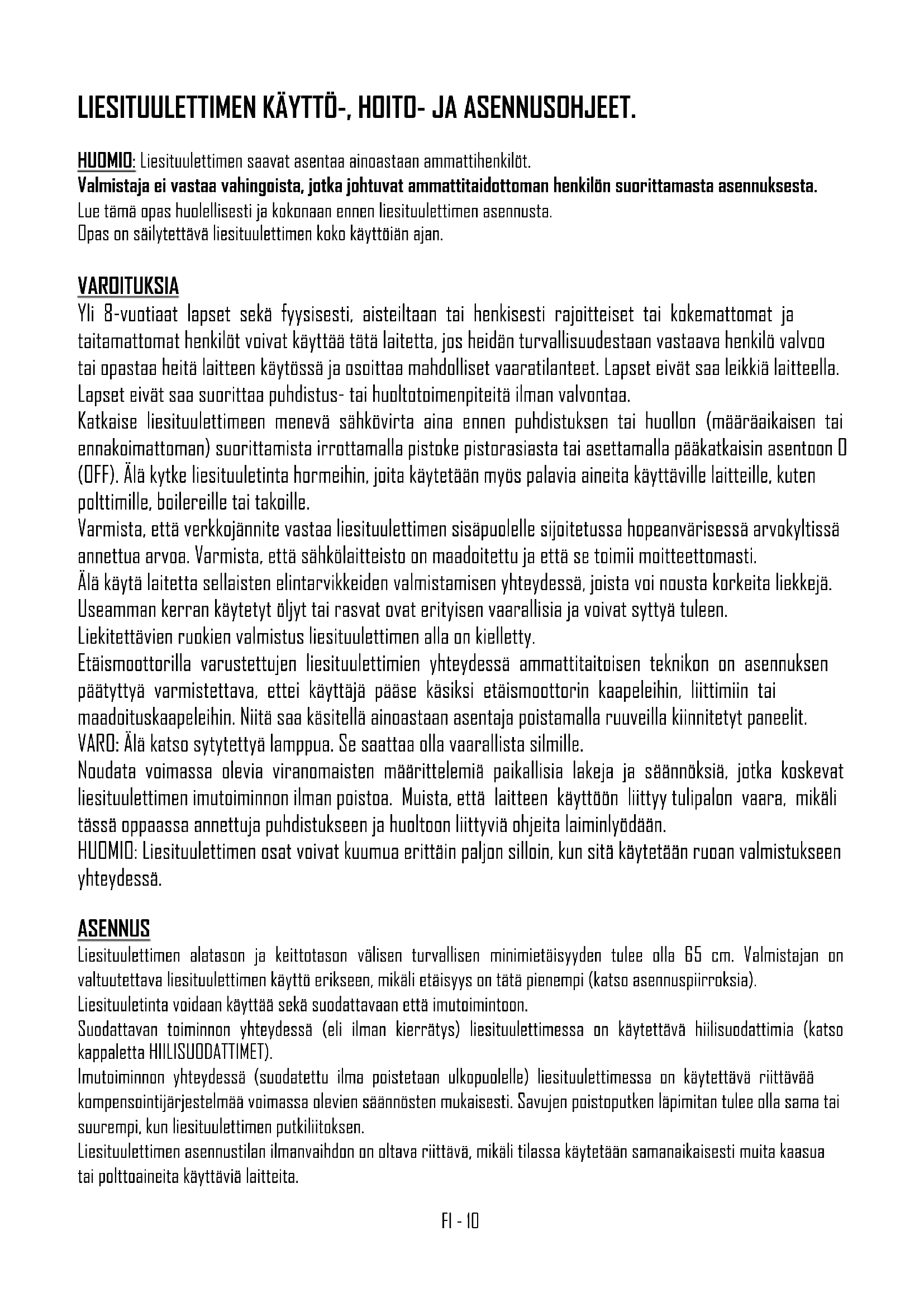 HUOMIO: Liesituulettimen saavat asentaa aingastaan ammattihenkilot.