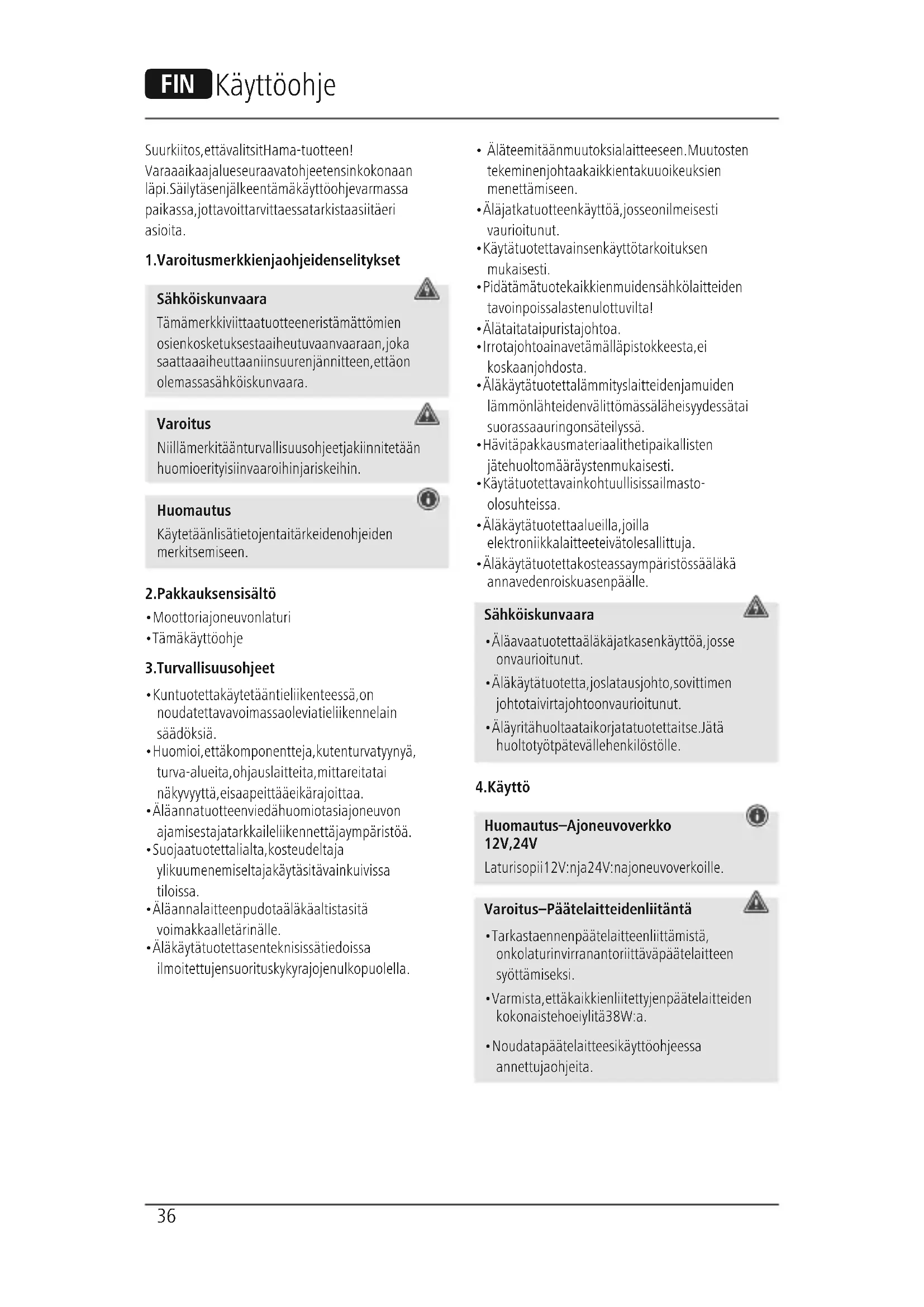 - Kun tuotetta käytetään tieliikenteessä, on noudatettava voimassa olevia tieliikennelain säädöksiä.