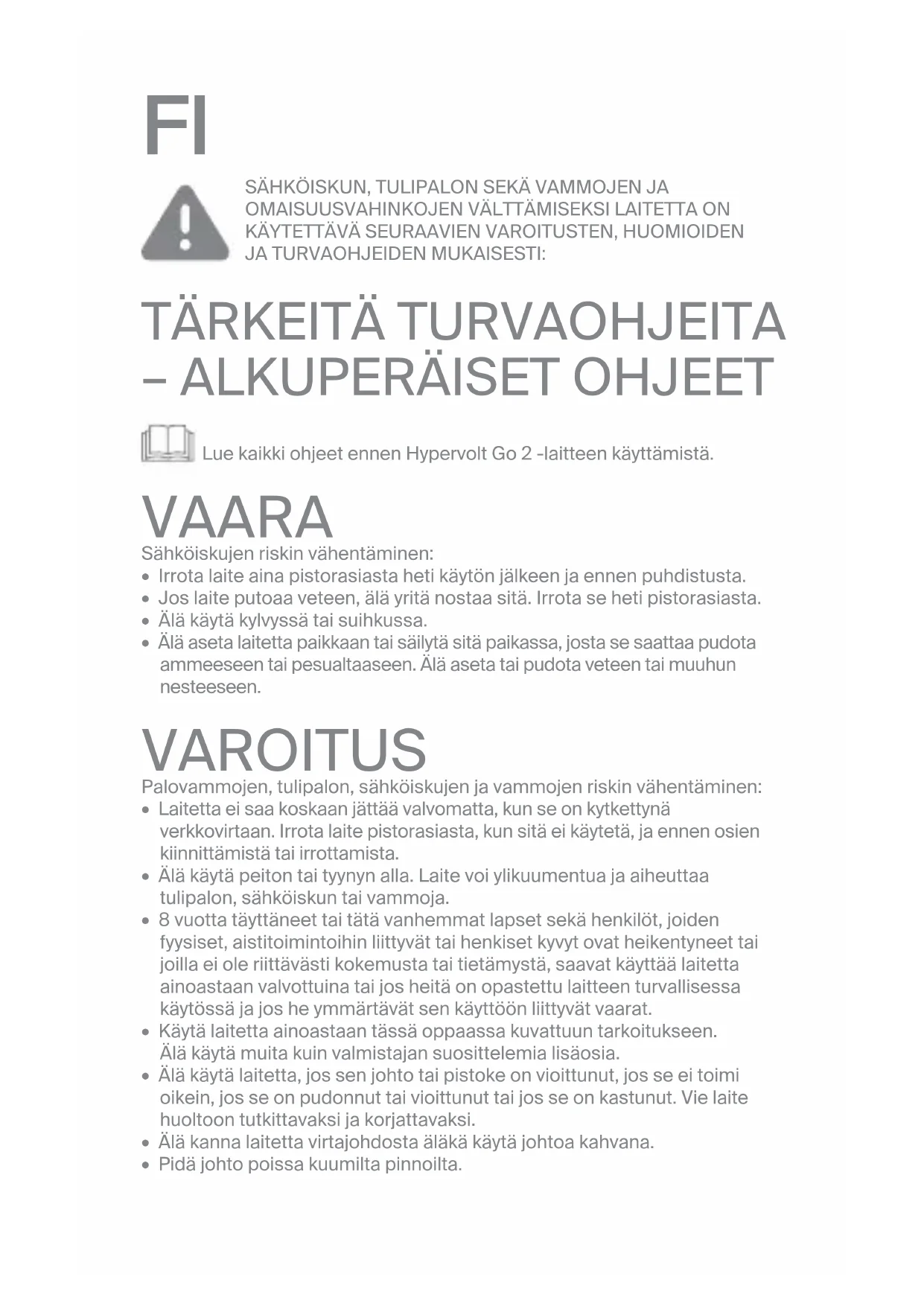 Lue kaikki ohjeet ennen Hypervolt Go 2 -laitteen käyttämistä. VAARA Sähköiskujen riskin vähentäminen: