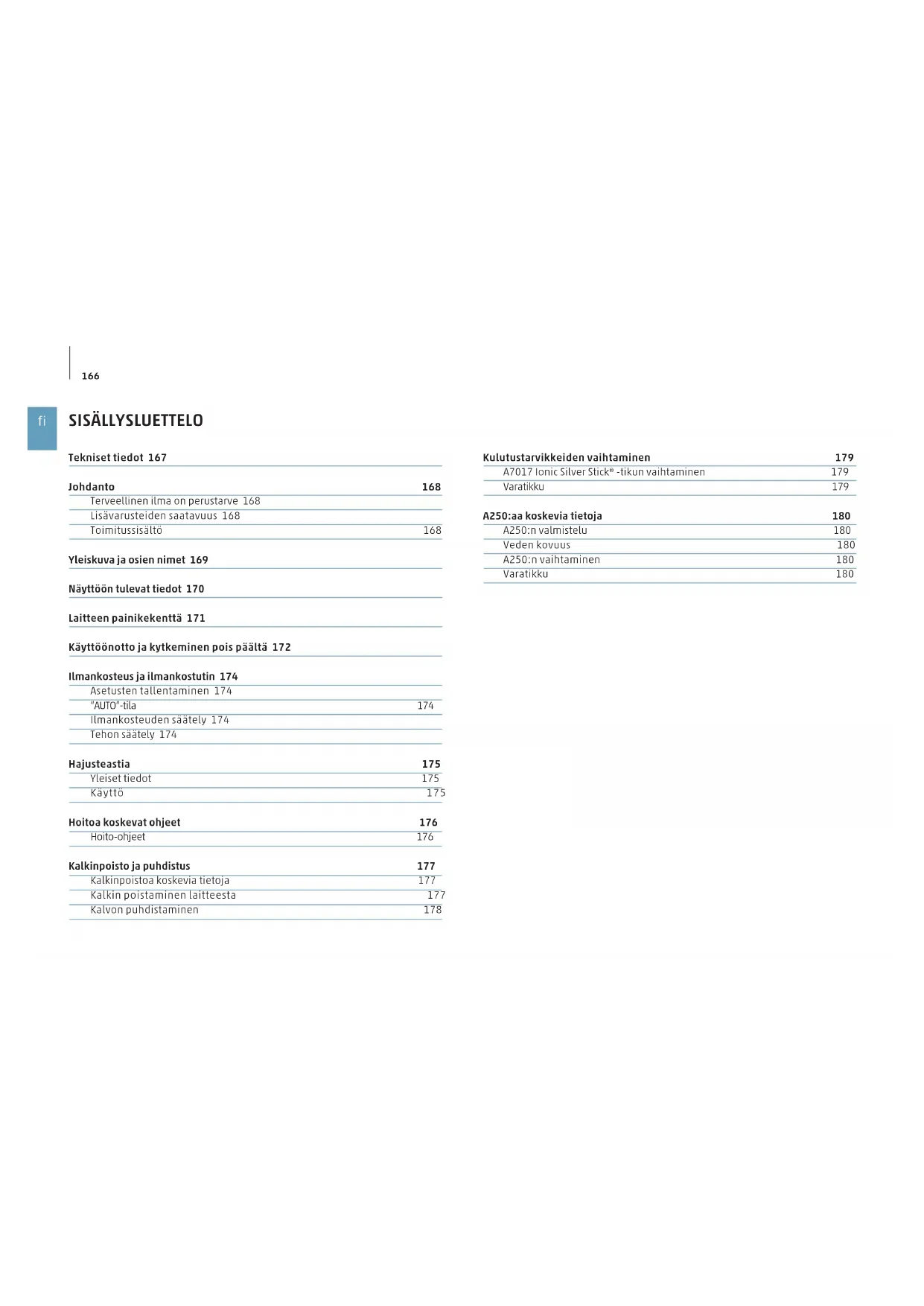 | A7017 lonic Silver Stick®-tikun vaihtaminen | 179 |