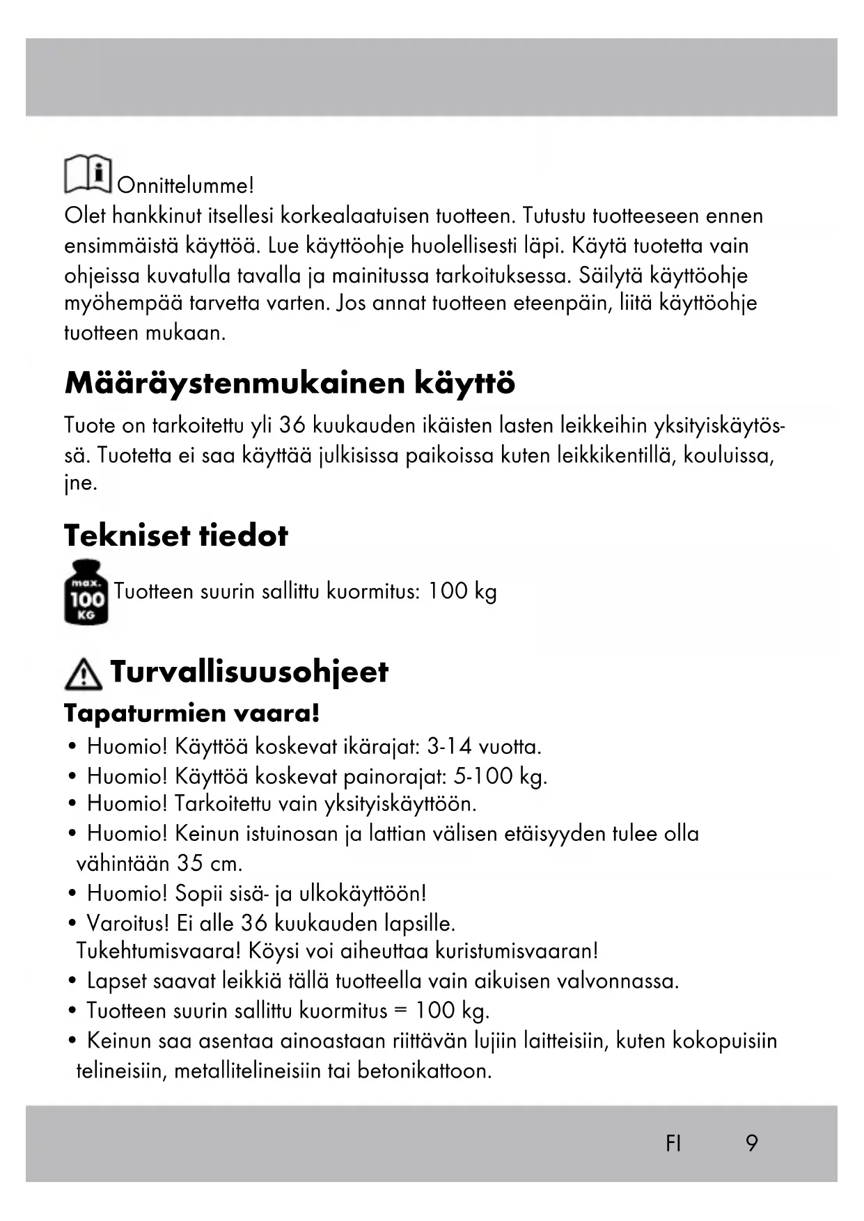 - Tuotteen suurin sallittu kuormitus = 100 kg.
