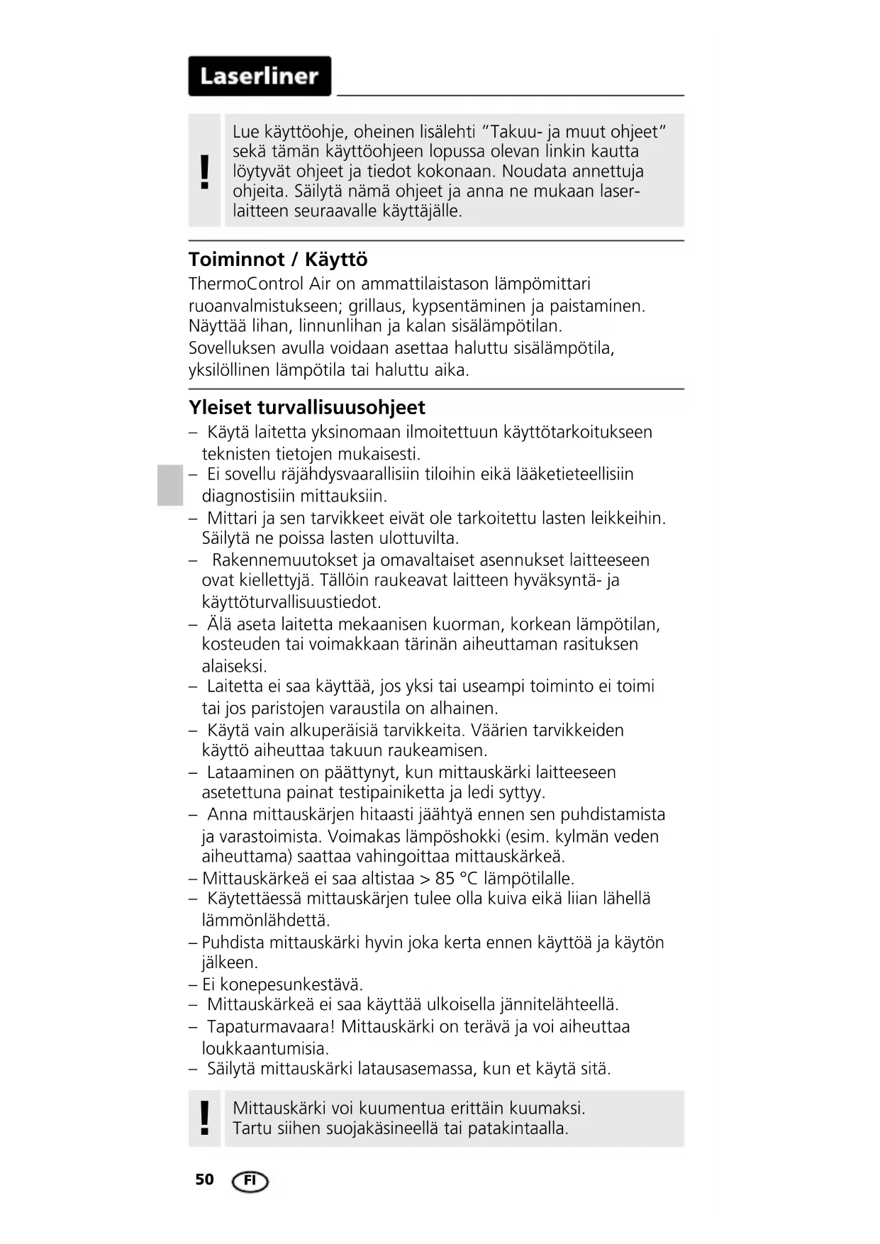 KÄYTTÖOHJE ThermoControl Air Laserliner