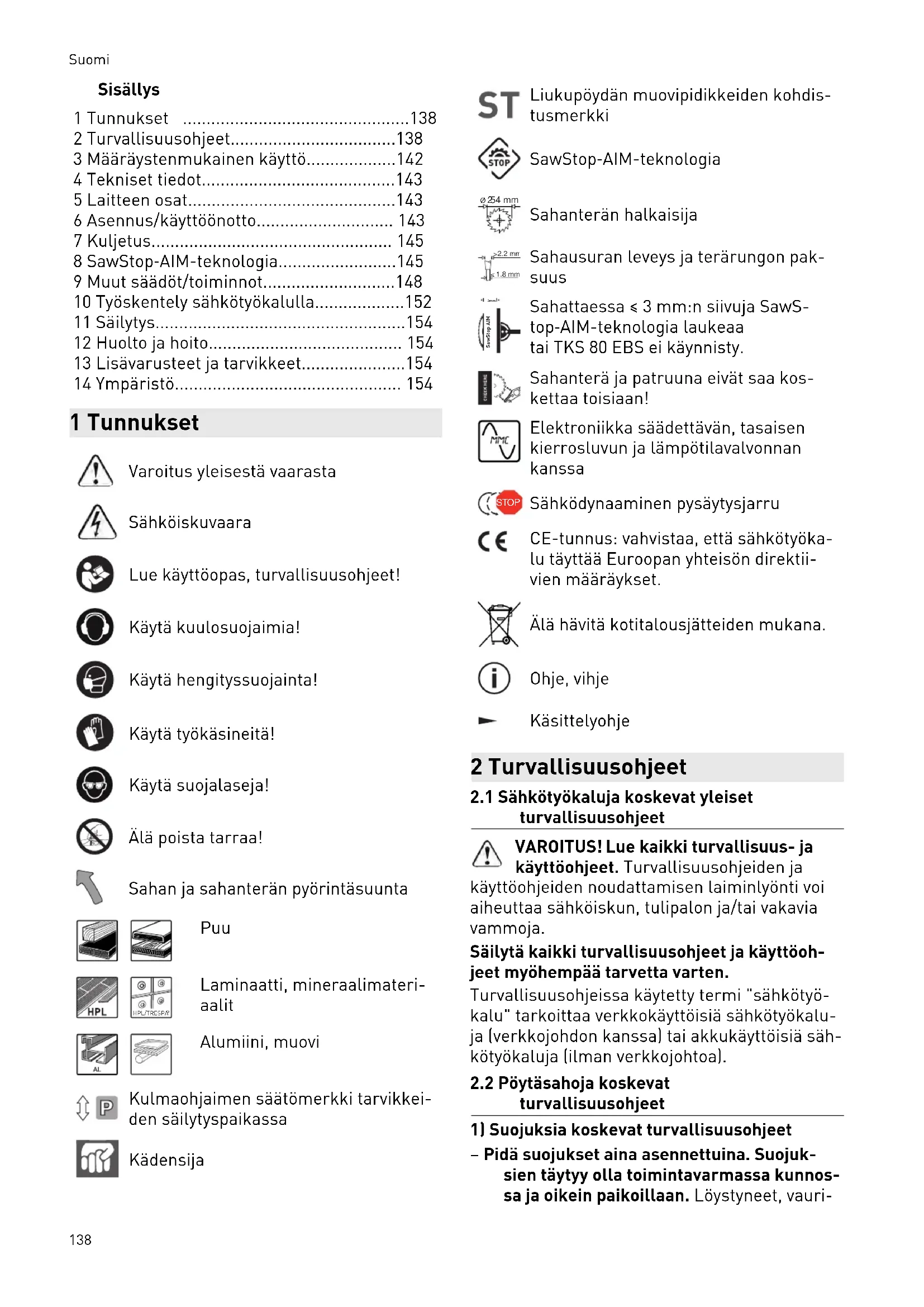 - 8 SawStop‑AIM-teknologia p. 145
