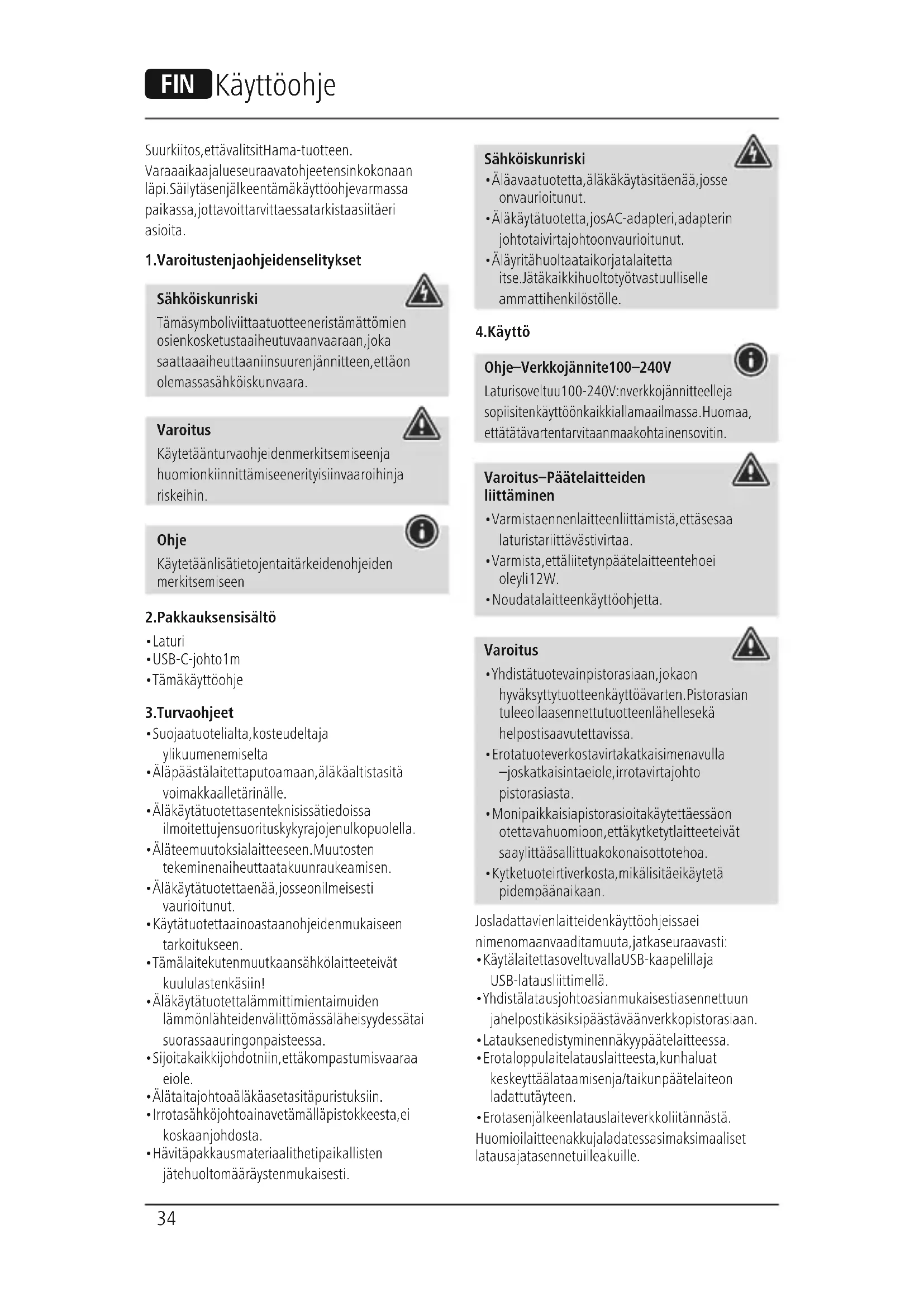 Hama GmbH & Co KG ei vastaa millään tavalla vahingoista, jotka johtuvat epäasianmukaisesta asennuksesta tai tuotteen käytöstä tai käyttöohjeen ja/tai turvaohjeiden vastaisesta toiminnasta.