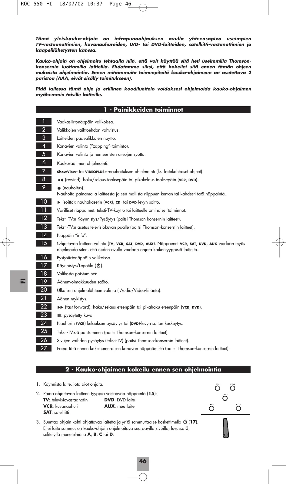 ROC 550 - Kaukosäädin THOMSON - Ilmainen käyttöohje ja opas