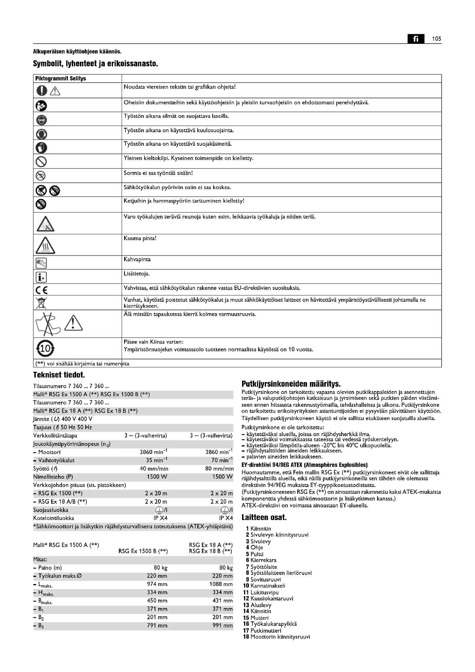 Löydä laitteen käyttöohje ilmaiseksi RSG EX18b Fein PDF-muodossa.