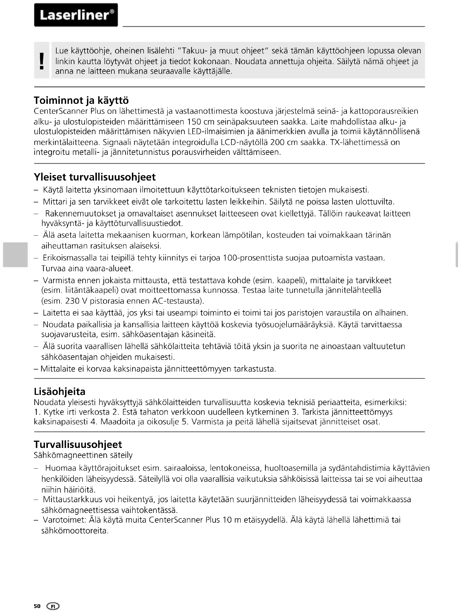KÄYTTÖOHJE CenterScanner Plus Laserliner
