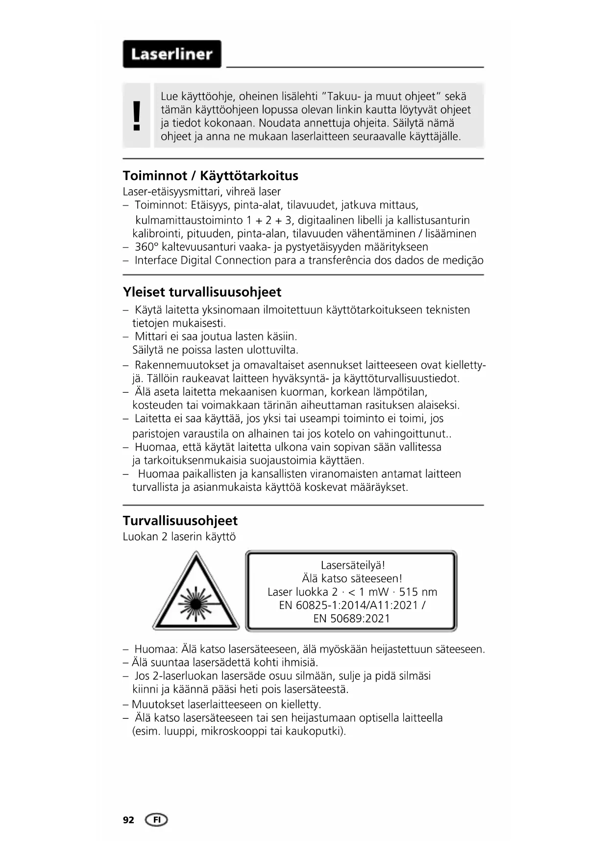 KÄYTTÖOHJE LaserRangeMaster Gi7 Pro Laserliner