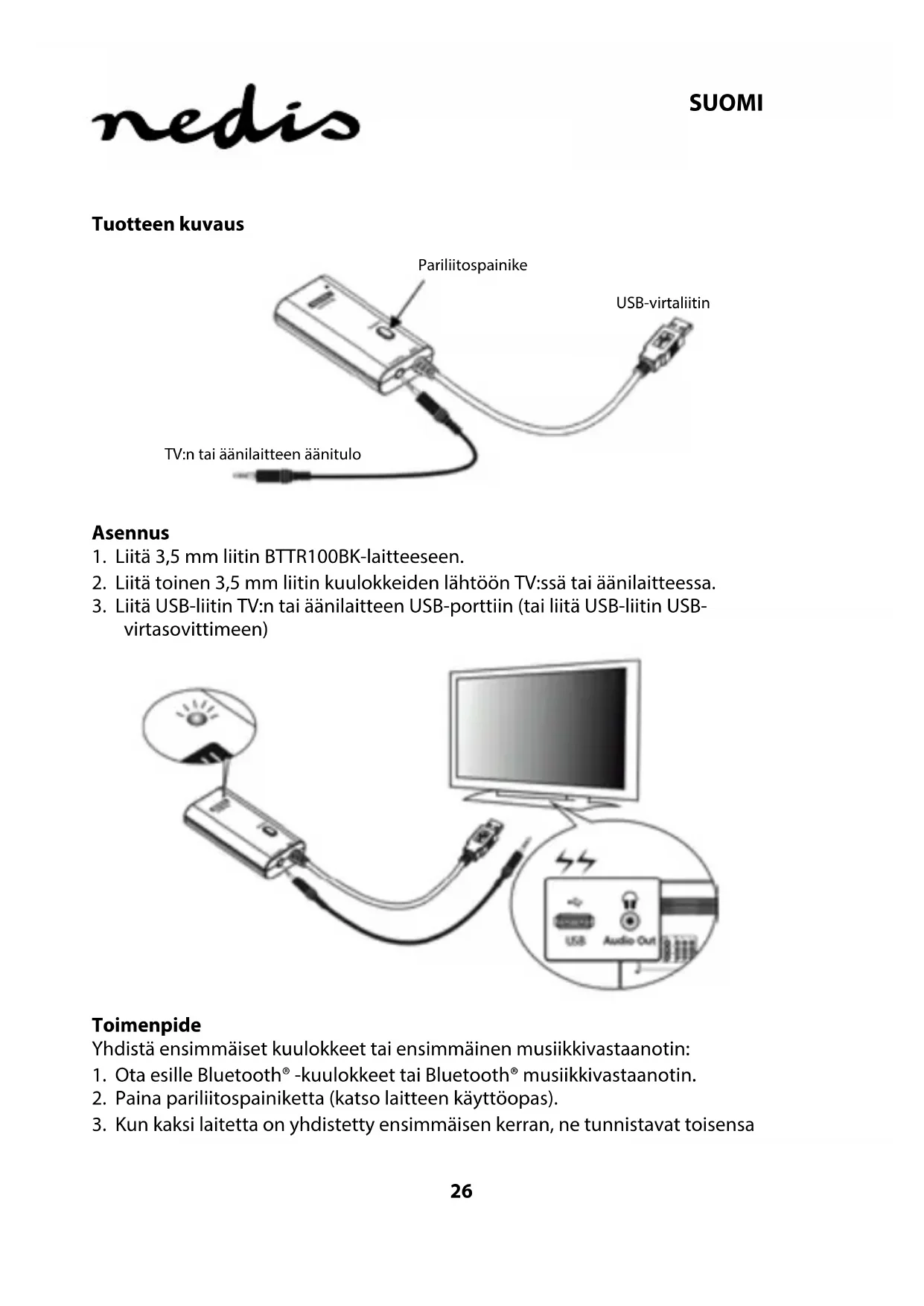 KÄYTTÖOHJE BTTR100BK NEDIS
