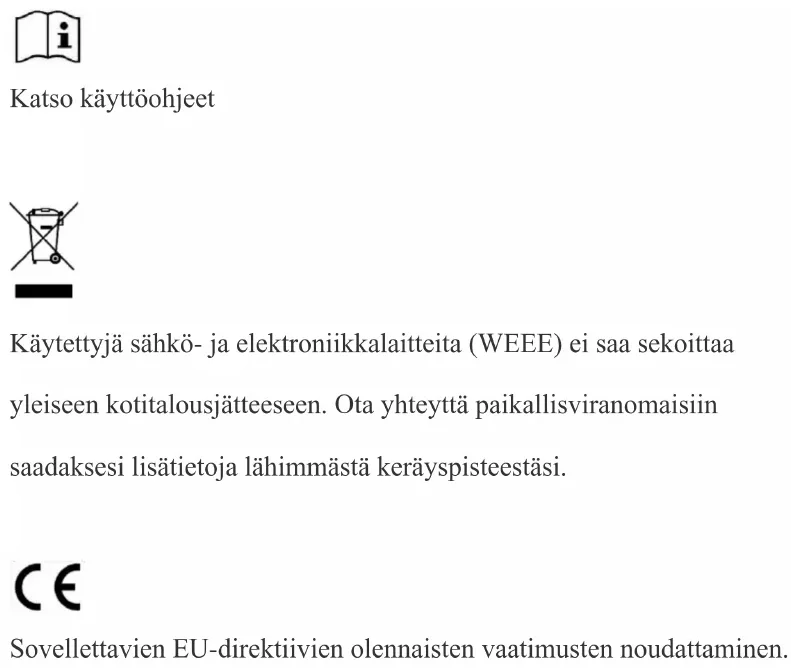 Sovellettavien EU-direktiivien olennaisten vaatimusten noudattaminen.Turvallisuuskuvakkeiden selitys