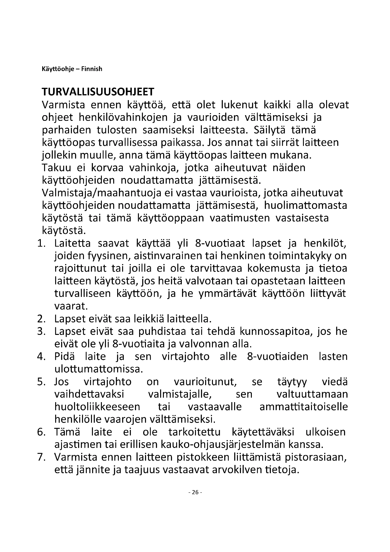 1. Tämä laite on tarkoitettu vain kotitalouskäyttöön.- 29 -