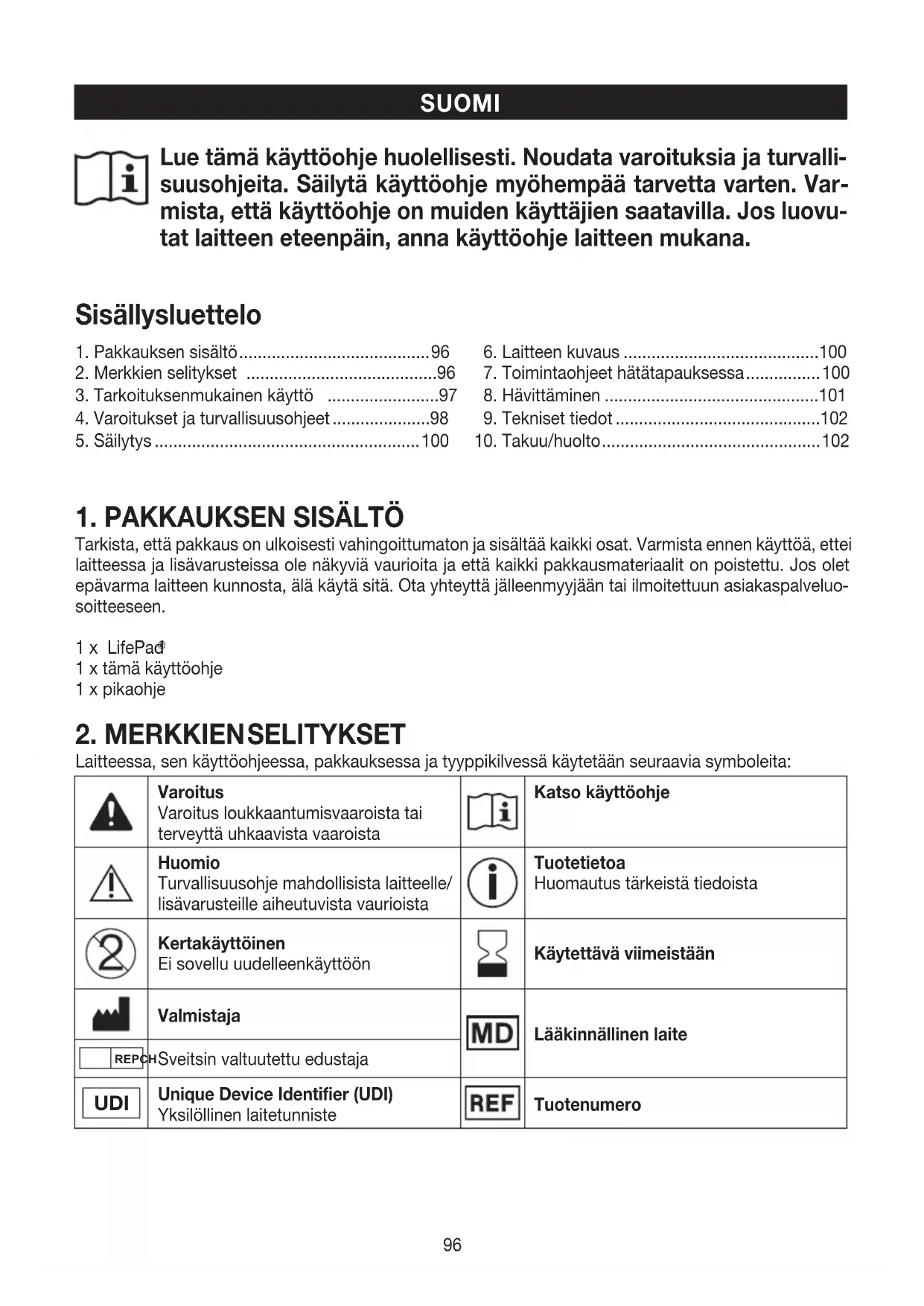 -laitetta saa käyttää vain siihen käyttötarkoitukseen, johon se on kehitetty, ja käyttöohjeessa kuvatulla tavalla. Käyttötarkoitus LifePad