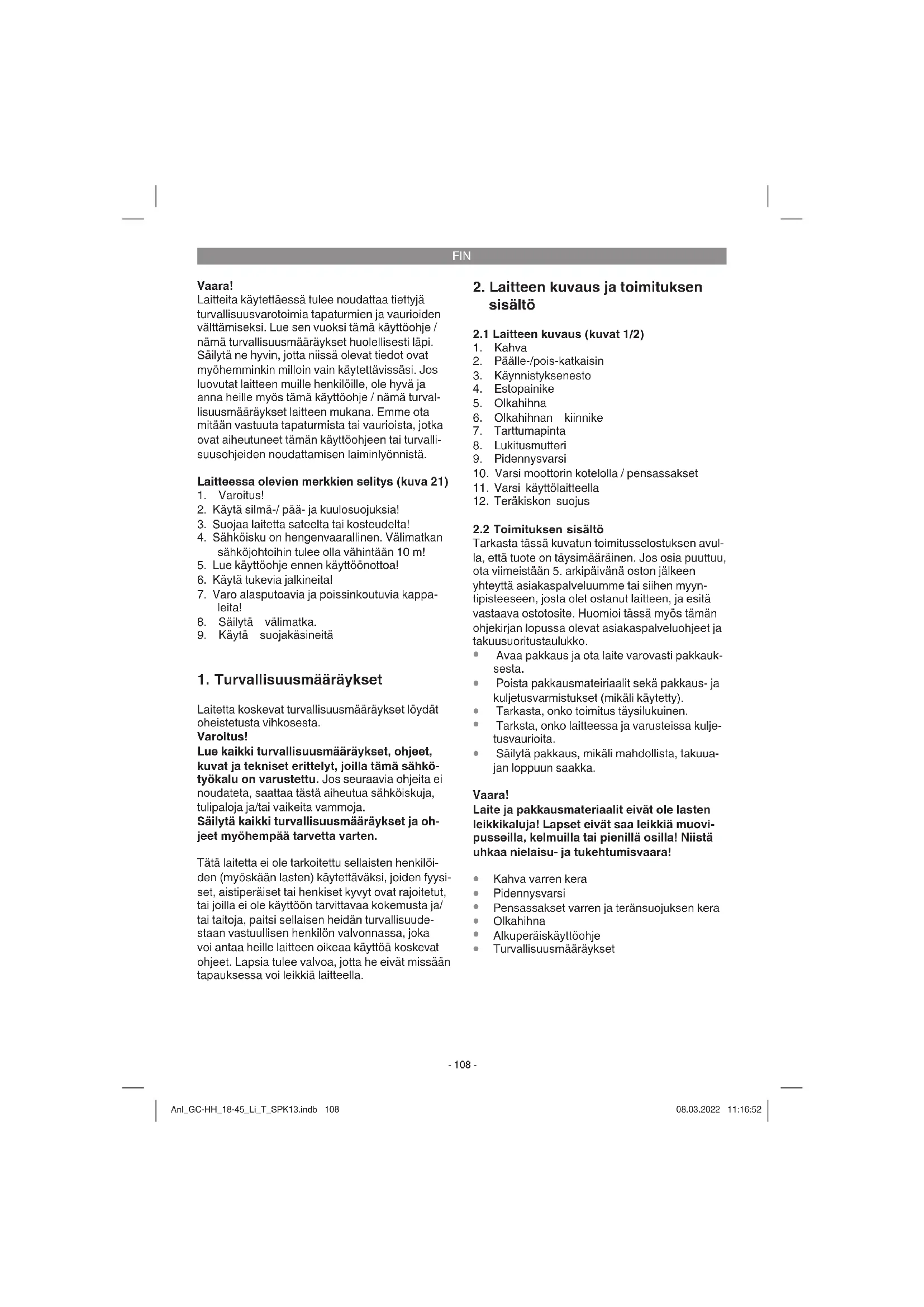 Mikä mielestäsi on laitteessa vikana (pääasiallinen vika)? Kuvaa tätä toimintavirhettä. Anl_GC-HH_18-45_Li_T_SPK13.indb 116Anl_GC-HH_18-45_Li_T_SPK13.indb 116 08.03.2022 11:16:5408.03.2022 11:16:54FIN