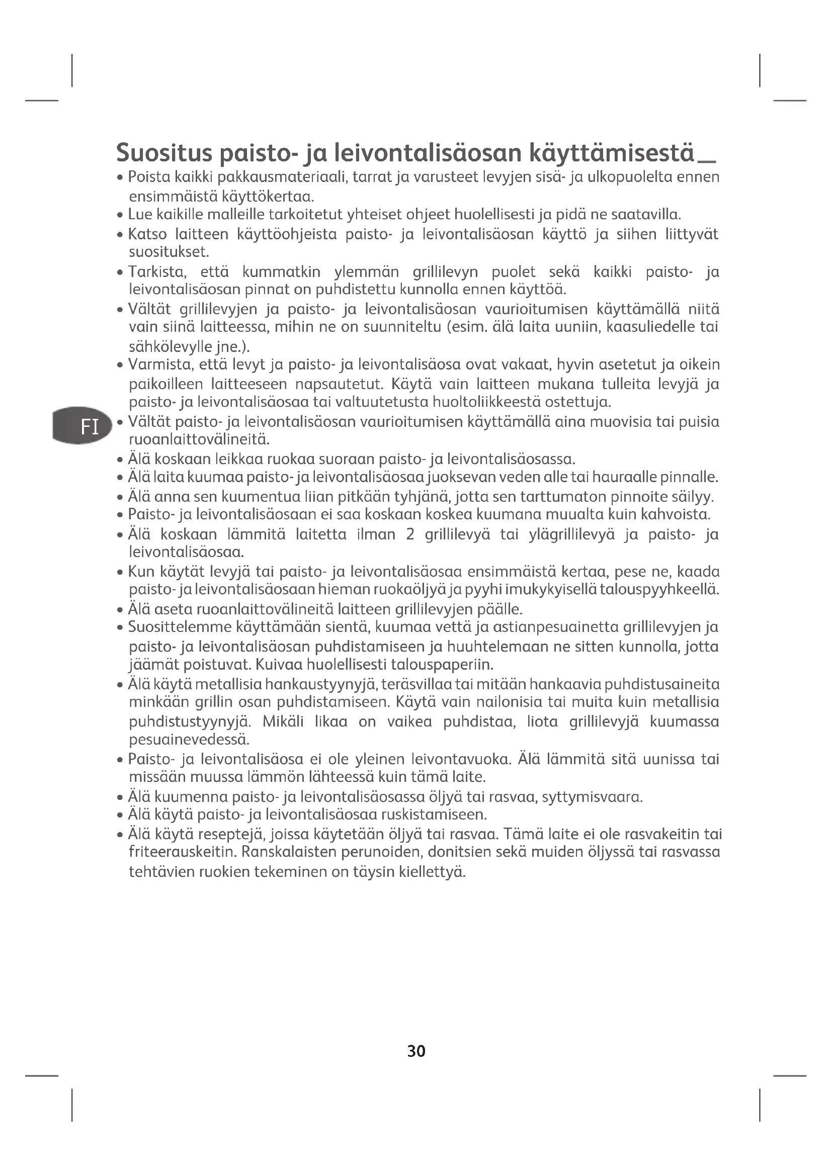 - Vältät grillilevyjen ja paisto- ja leivontalisäosan vaurioitumisen käyttämällä niitä vain siinä laitteessa, mihin ne on suunniteltu (esim. älä laita uuniin, kaasuliedelle tai sähkölevylle jne.).