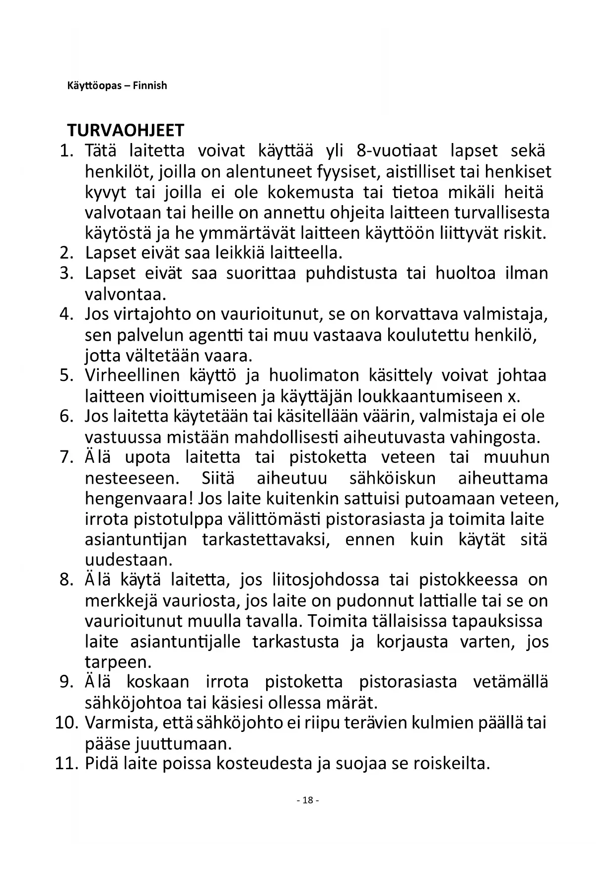 17. Säilytä laite kuivassa paikassa, lasten ulottumattomissa