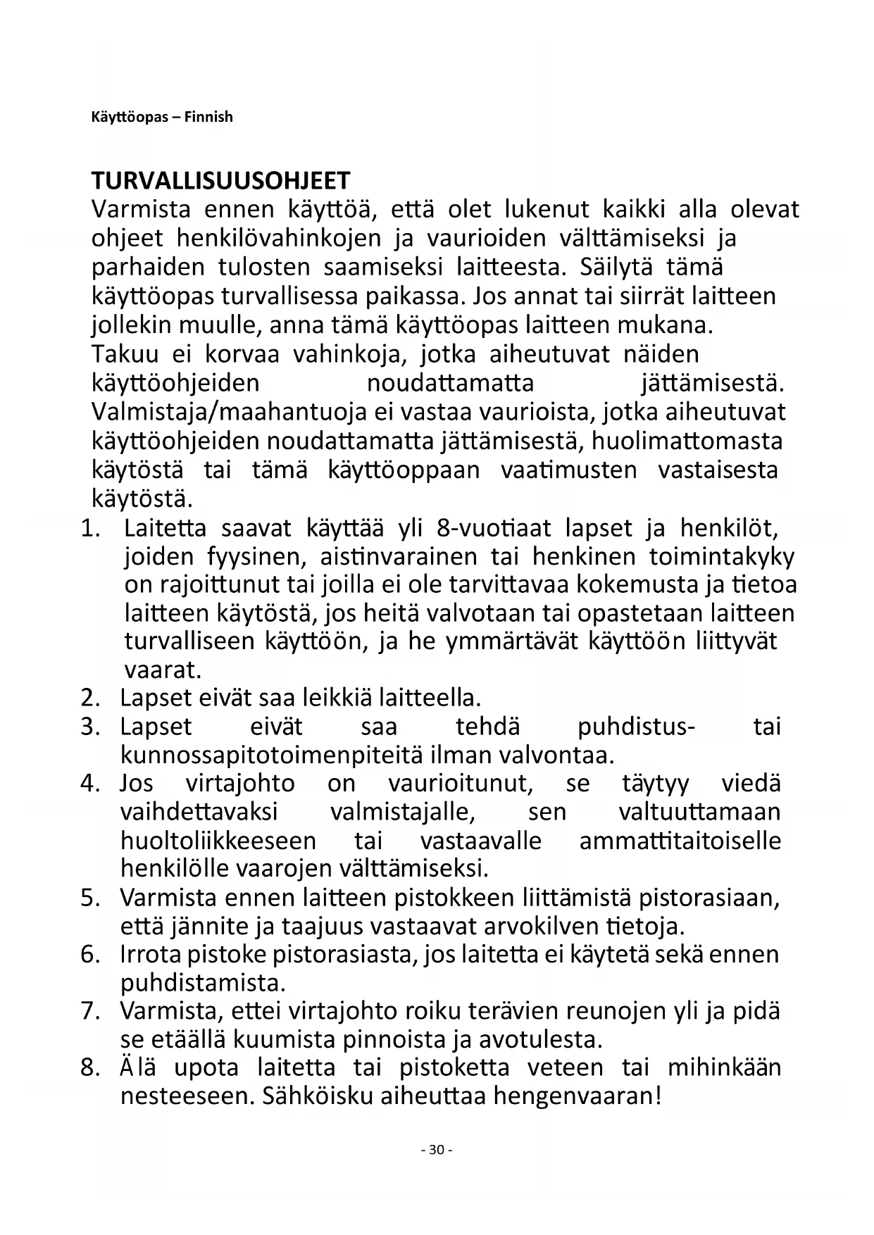 1. Laitetta saavat käyttää yli 8-vuotiaat lapset ja henkilöt,