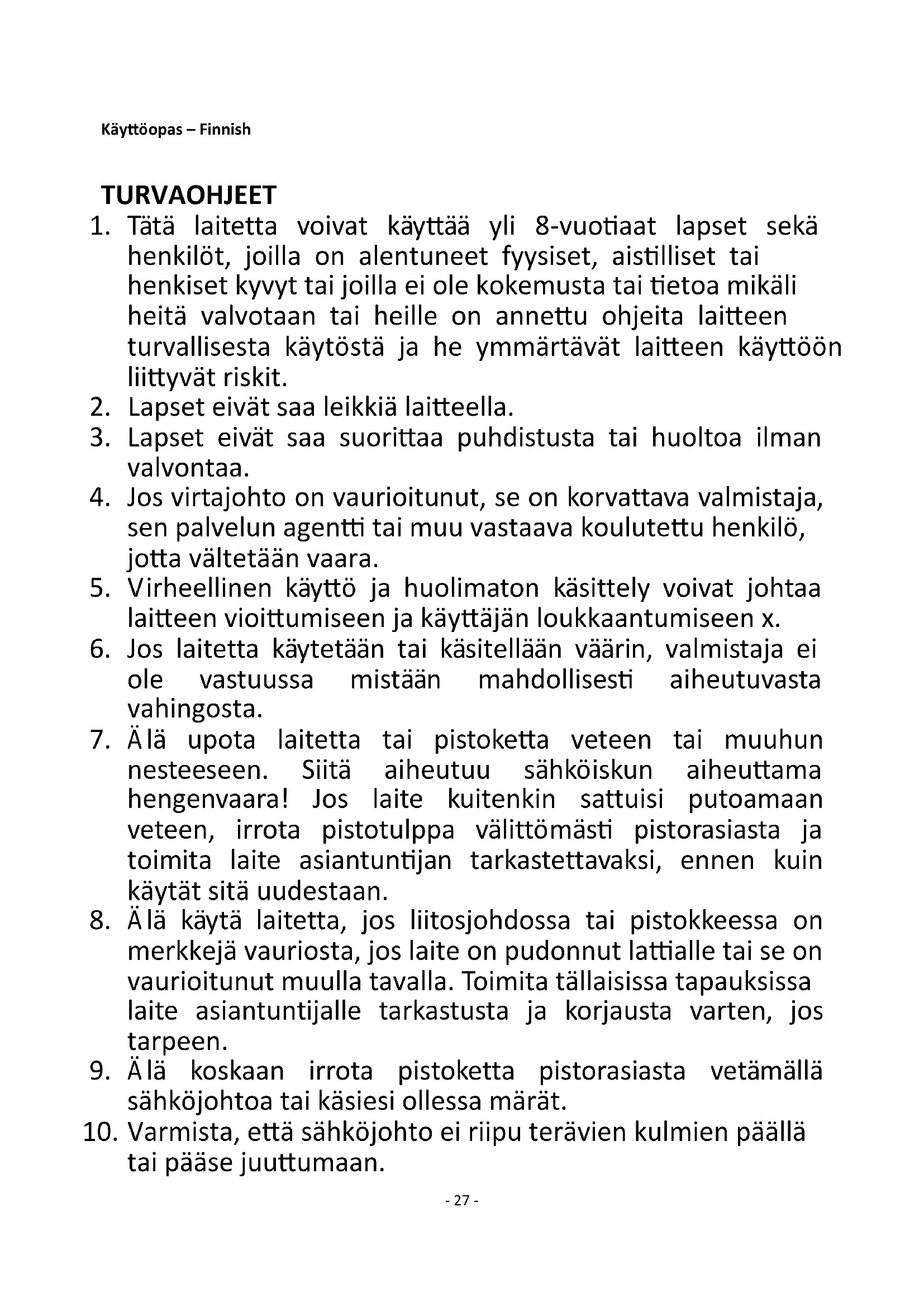 1. Tätä laitetta voivat käyttää yli 8-vuotiaat lapset sekä