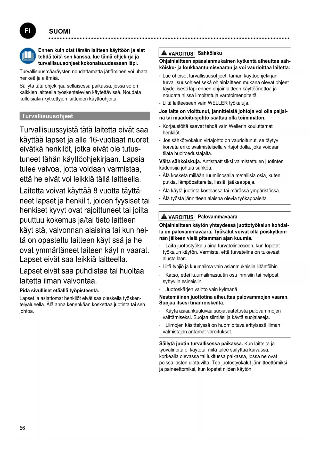 - Korjaustöitä saavat tehdä vain Wellerin kouluttamat henkilöt.