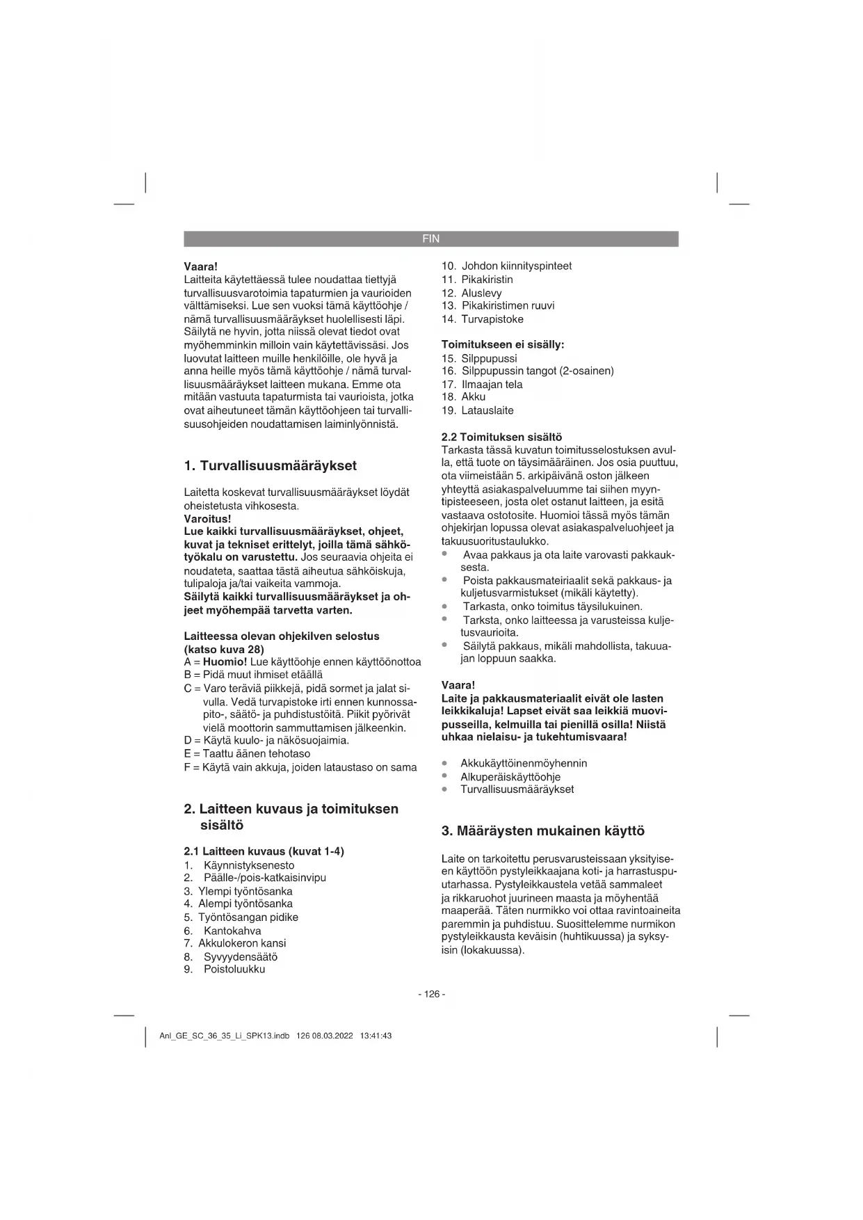 Käytä suojakäsineitä. Anl_GE_SC_36_35_Li_SPK13.indb 127 08.03.2022 13:41:44FIN